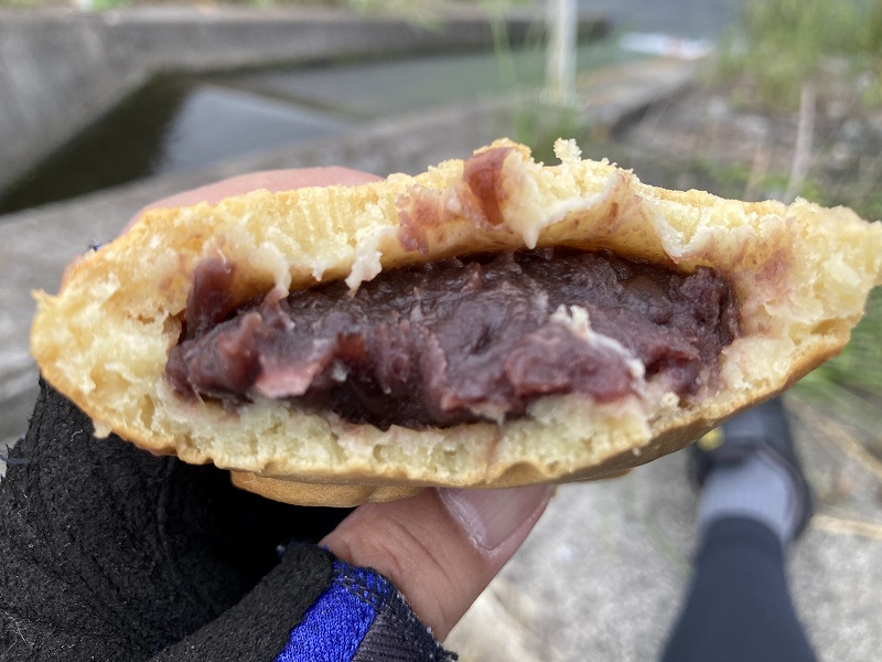そしてクジラ焼きもゲットして河原でエネルギー補給です。200円で普通のたい焼きでは考えられないくらいの餡子が詰まってておなか一杯になる!おまけでクラッカーをもらってしまいました〜
