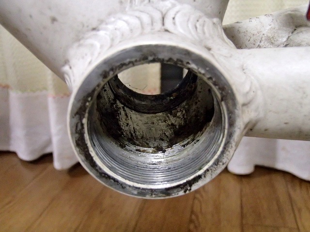ヘッドとシートポストは少し錆びがあるような感じでしたが、BBと同じようにクリーナーで綺麗にするだけで問題ありませんでした。雨ざらしだった割には錆びはでていないので安心しました。