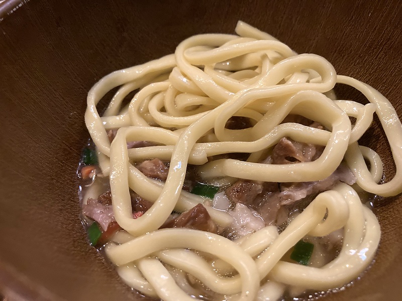 締めはソーキそばとボロボロジューシー(炊き込みご飯の雑炊?)をみんなで締めとして分けて食べました。いろんな料理をみんなで分けて食べておなか一杯!