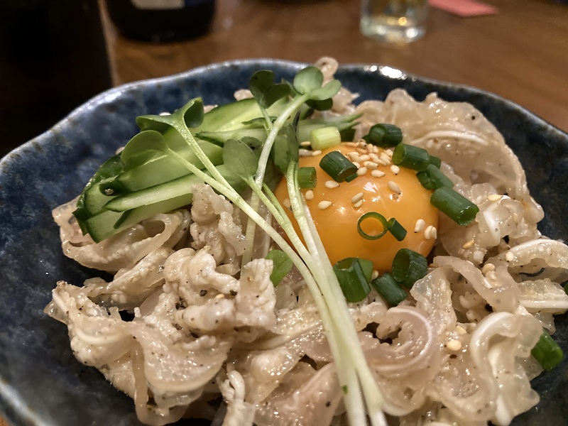 メニューは創作料理なのですが、ちゃんと何が出てくるかがわかるので安心です。日本酒のメニューも今日入荷したものが右下の2つですって教えてくれて親切な対応でした。もちろん僕はその「播州一献」「来福」を飲みました。みなさんは「日高見」がお気に入りのようでしたね。