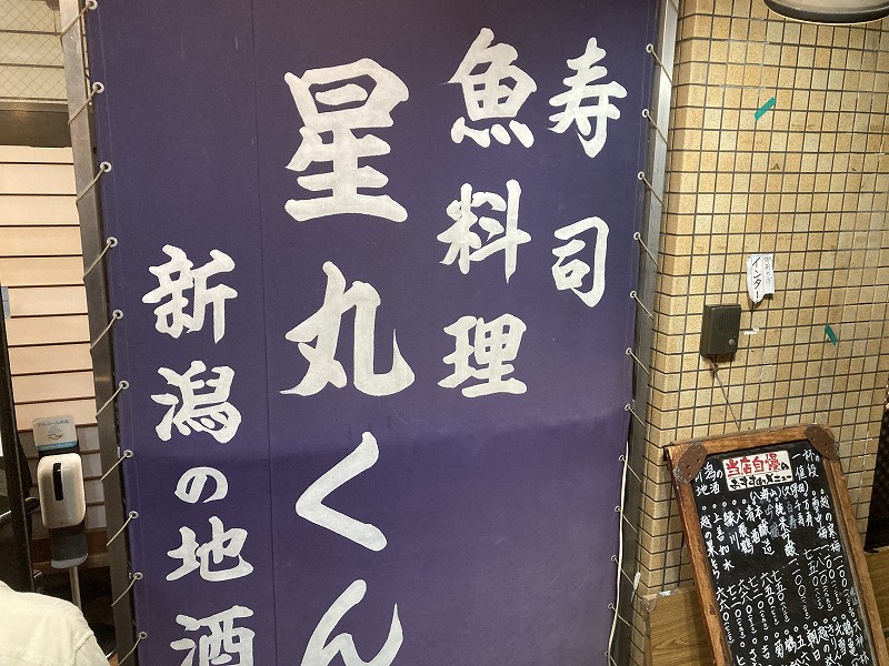 今回はお魚にしようということで「魚料理 星丸くん」に行ってきました。以前からうろうろしているときに良さそうと思っていたお店で暖簾があります。(外壁塗装中のようでちょっとわかりずらいけど)