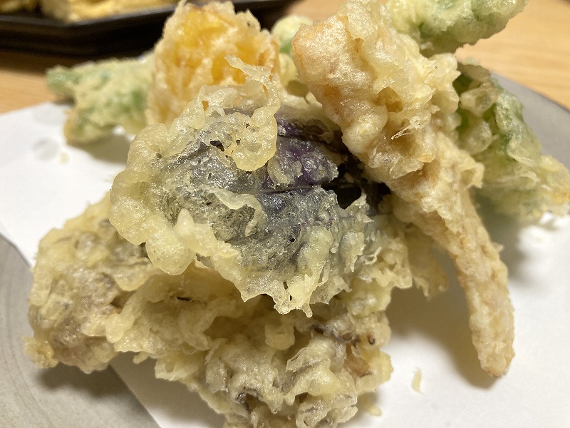 野菜天ぷら盛り合わせ(これも揚げたててうま!)
