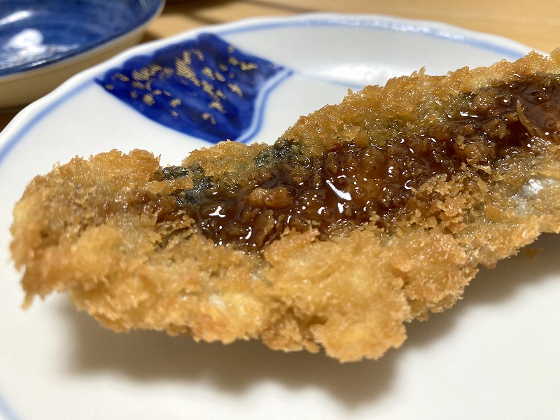 アジフライ(独特な形?の肉厚アジフライが熱々で出てきます)