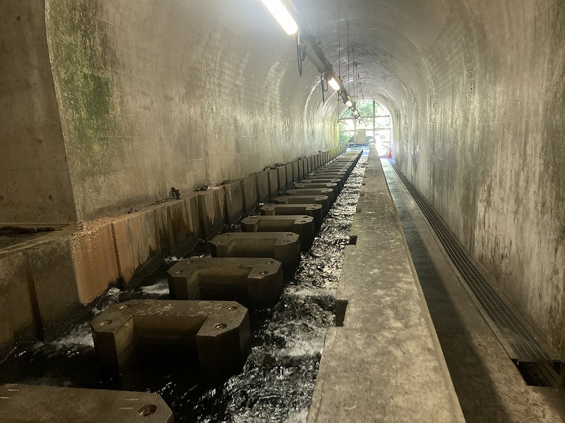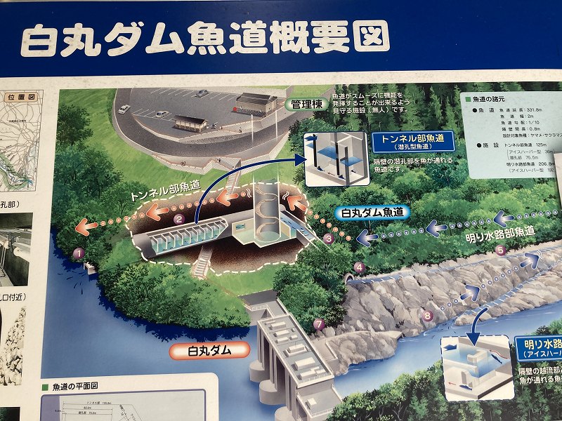 どっかで見たことあるような、、江戸川の龍Q館みたいですね。ちょっと降りると涼しいです。ダムを作ってしまったので魚が遡上できるように魚道を作ってあるので見学できるようになっていて、ダムの上まで降りることが出来ます。