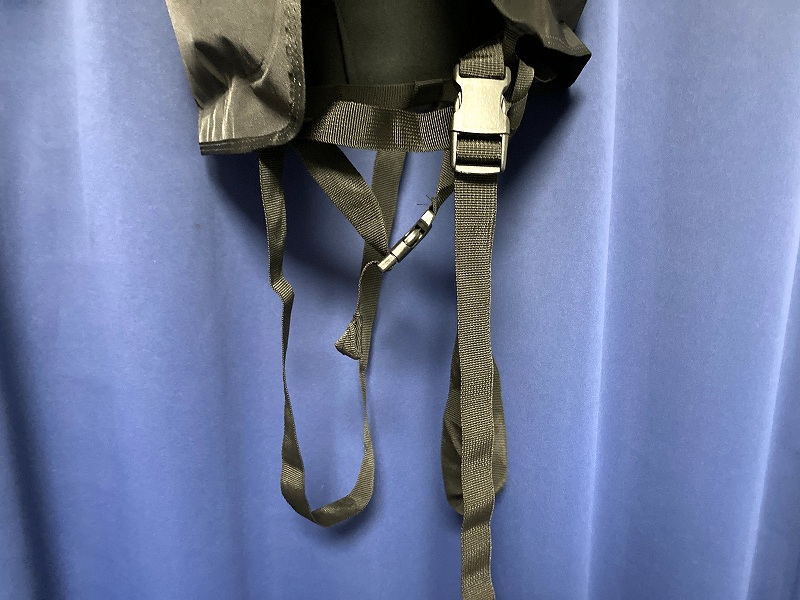 本来はシュノーケリング用なので股下にはベルトがないのですが、PFDが上に抜けてしまいそうだったので100均のバントで股下ベルトを追加してみました。これでカヤック用になりましたね。