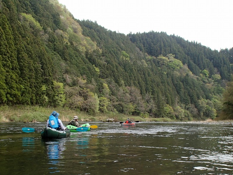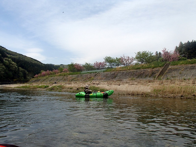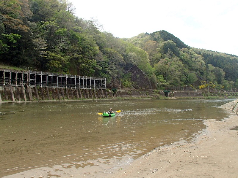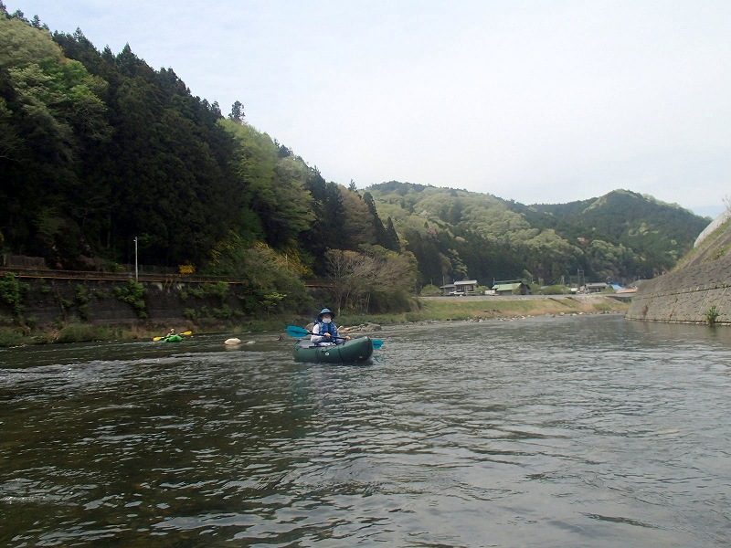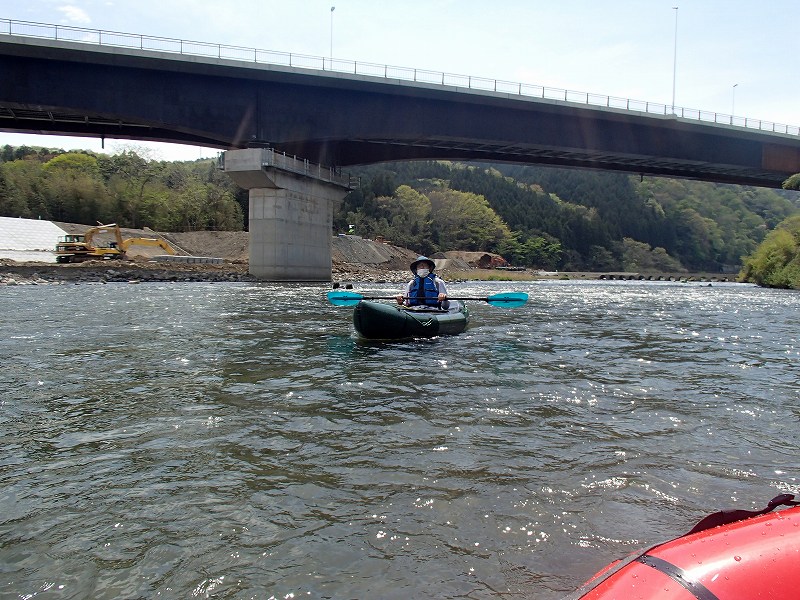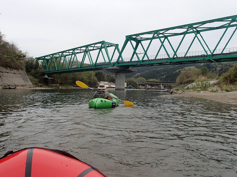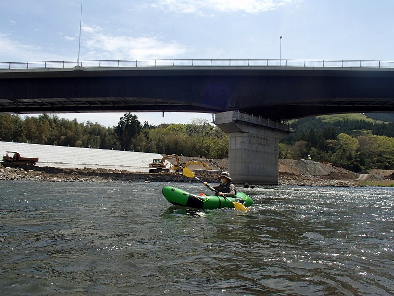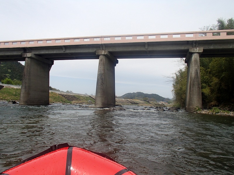 新緑の中をのんびりしたり、陸橋の下には堰とか瀬があったりしてアドベンチャーだったりします。常にどこを通過すればいいのかを見極めないとけません。沈下橋もあったりして下を通れるのか?相談したり、かがんだり。今回は水が少なかったので余裕ですが、、、逆に瀬では何回も座礁しました。!