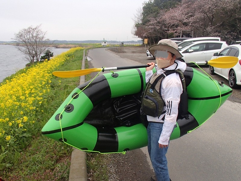 IMG_25569 はんぞうさん、まっちさん、Spiritさんは結構奥まで行ってから戻ってくるので、僕と東葛人さんは少し早めに戻ろうとしましたが、一瞬で追い抜かれてしまいました(笑)さらに、水路から大きい川にでてから上陸場所までは少し距離があるけど、すっごい向かい風だったので、パックラフトの僕たちは途中で上陸して担いで車まで(笑)パックラフトはめちゃくちゃ軽いボートなので担げてしまうのがいいんですよね〜