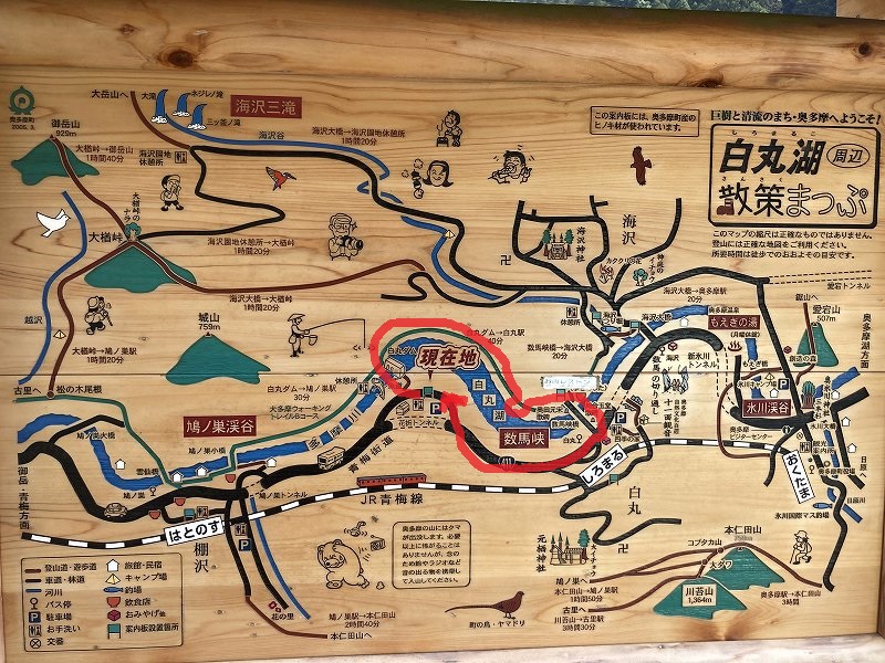 白丸湖は多摩川のカヤック遊びで有名な御岳や青梅より上流にあるのですが下道で2時間くらいで到着できるのでドライブにもいいですね。カヤックを出すときは白丸駅の少し上流からアプローチするようですが、今回は白丸ダムの駐車場からアプローチする事にしました。