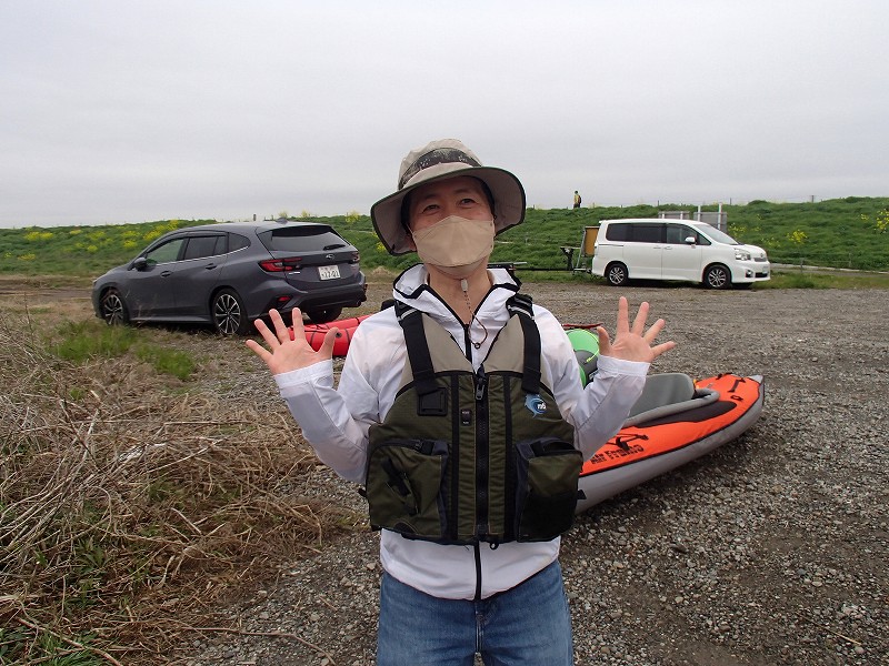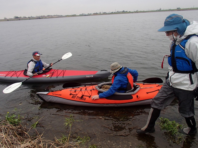 出艇準備しているとおじさんが話しかけてこられたのでちょっと雑談しながら準備します。水温が低いので浮かべたら萎んでいったので追加で空気を入れたりしていたので、いい話し相手になってもらえました(笑)。