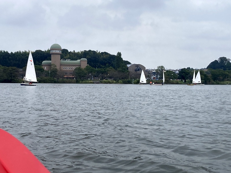 出艇場所の手前でティンギーの練習を見学させてもらいました。みんなどんどん東に行くな〜とおもったら、こっちが流されてただけでしたね(笑)ティンギーはホイッスルに合わせてターンしたりしてた気がする。