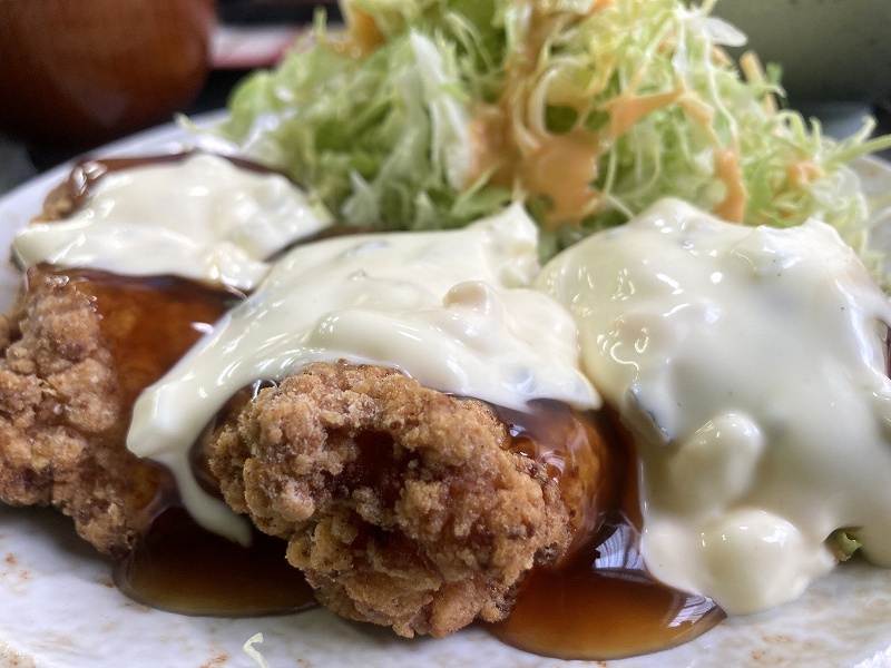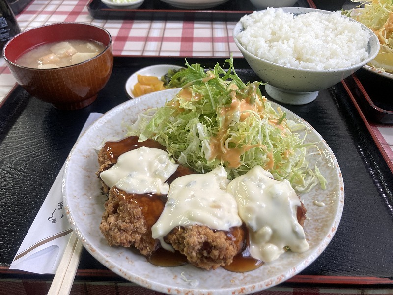 久しぶりのカヤックだったので少し短く切り上げて、いつもの「ドライブインなかむら」さんで大盛ランチ!今回はおすすめの「チキン南蛮定食」です。すっごいボリュームですっごい美味しいのでお腹パンパンになりながら完食!今日は晩御飯不要ですね。前回は「ソースヒレカツ丼セット」だったんだ!!全然覚えてなかった〜