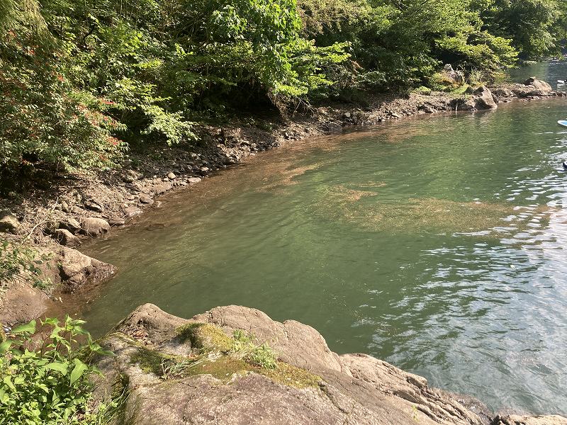 そして、競技練習コースのあとが大変でした。岩だらけでずっと避けながら進まないといけないし、落差があって背中からざっばーーんって水が入ってくるし。最後の落差はすごくて全身ずぶ濡れで楽しすぎました。もしかして、こっちが「しゃもの瀬」だったのかな?