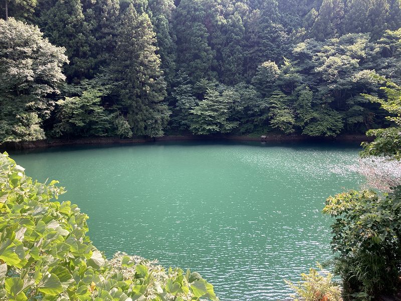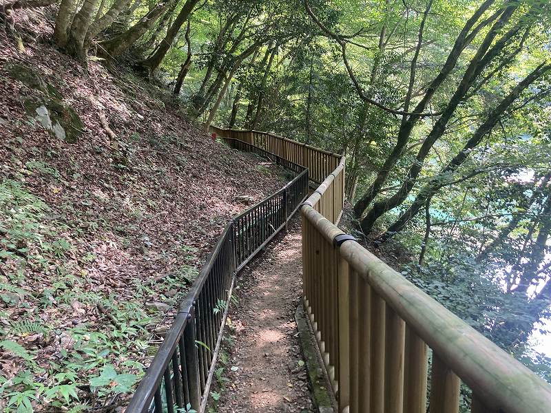 ダムを歩いて対岸にいくと遊歩道になっているのでハイキングのようにあるけます。水は青くてきれいですね。今日はそれほど透明度は高くないみたいです。