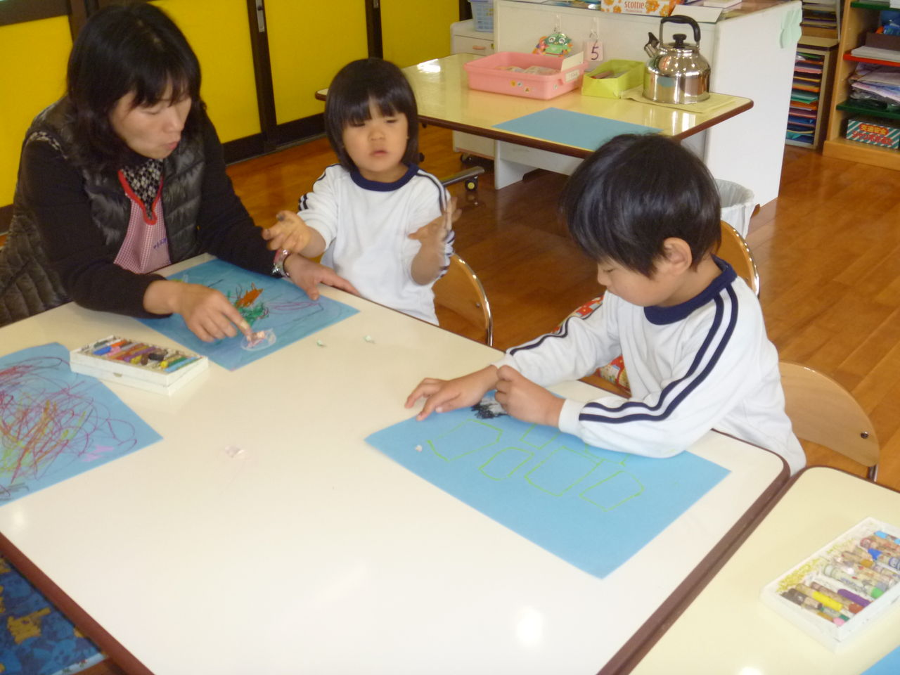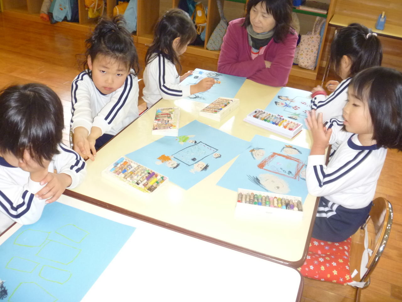 今日描いた絵は、保育室に飾ってありますので、また見てあげてくださいね