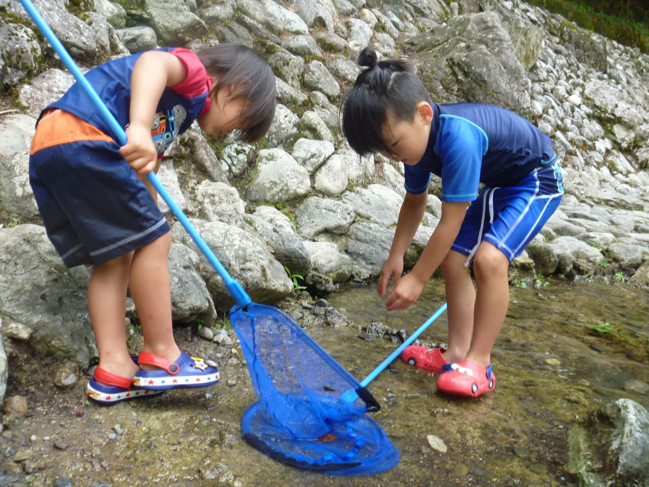 男の子はおたまじゃくしや魚とりに夢中で、女の子は・・・・