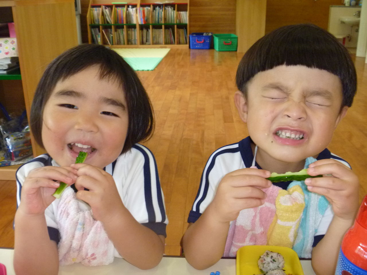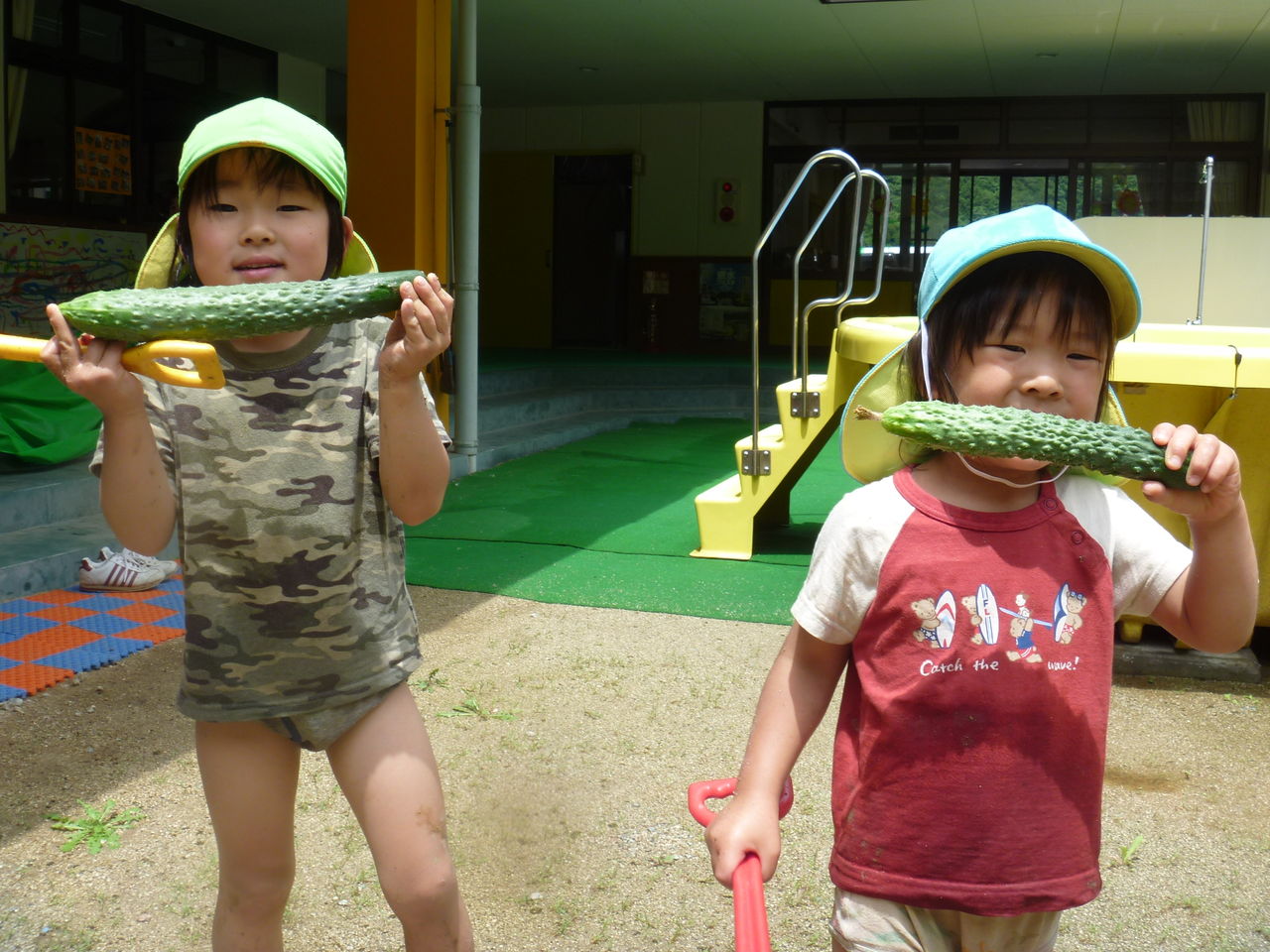 とれたてのきゅうりはとてもおいしく、「あまーい」「おかわりー」と取り合いになるほど(*'-'*)