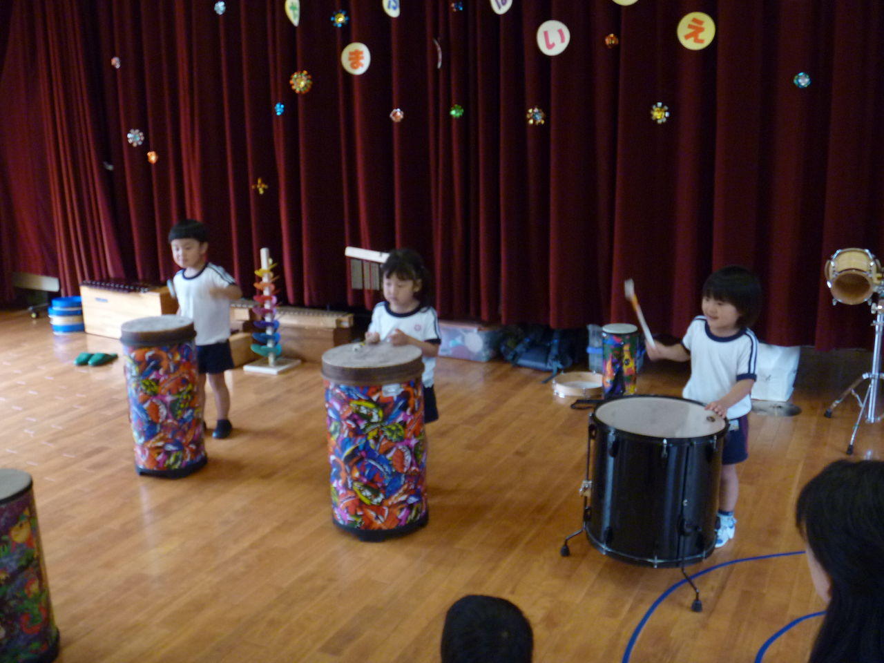 音楽に合わせて色んな動物になったり、加藤先生が持ってきてくださった名前も知らないような楽器を演奏したり・・・みんなかっこいいドラマーのよう(* ̄∇ ̄*)エヘヘでした。