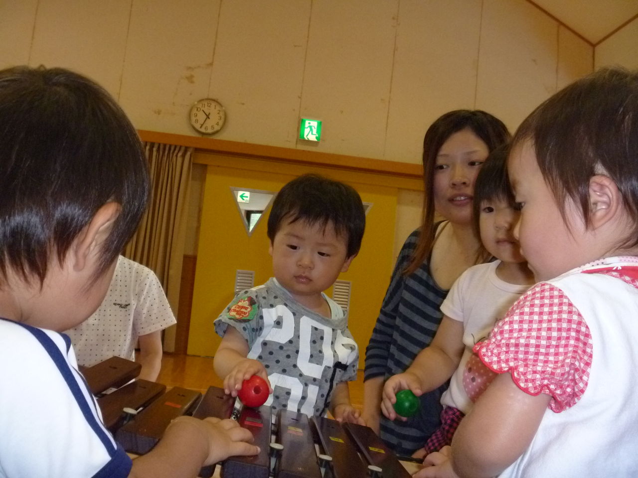 ひよこ組・りす組さんとリズム遊びで色んな楽器を鳴らしたり、音遊びを楽しみました('▽'*)ニパッ♪