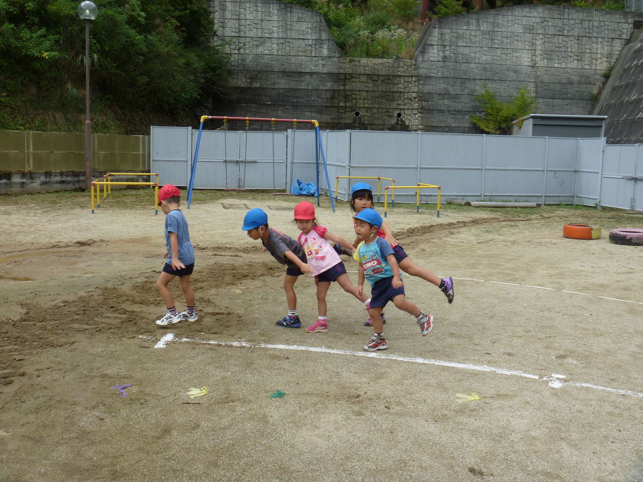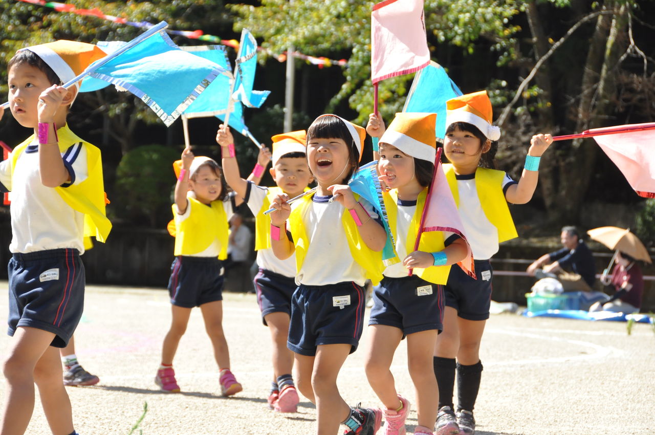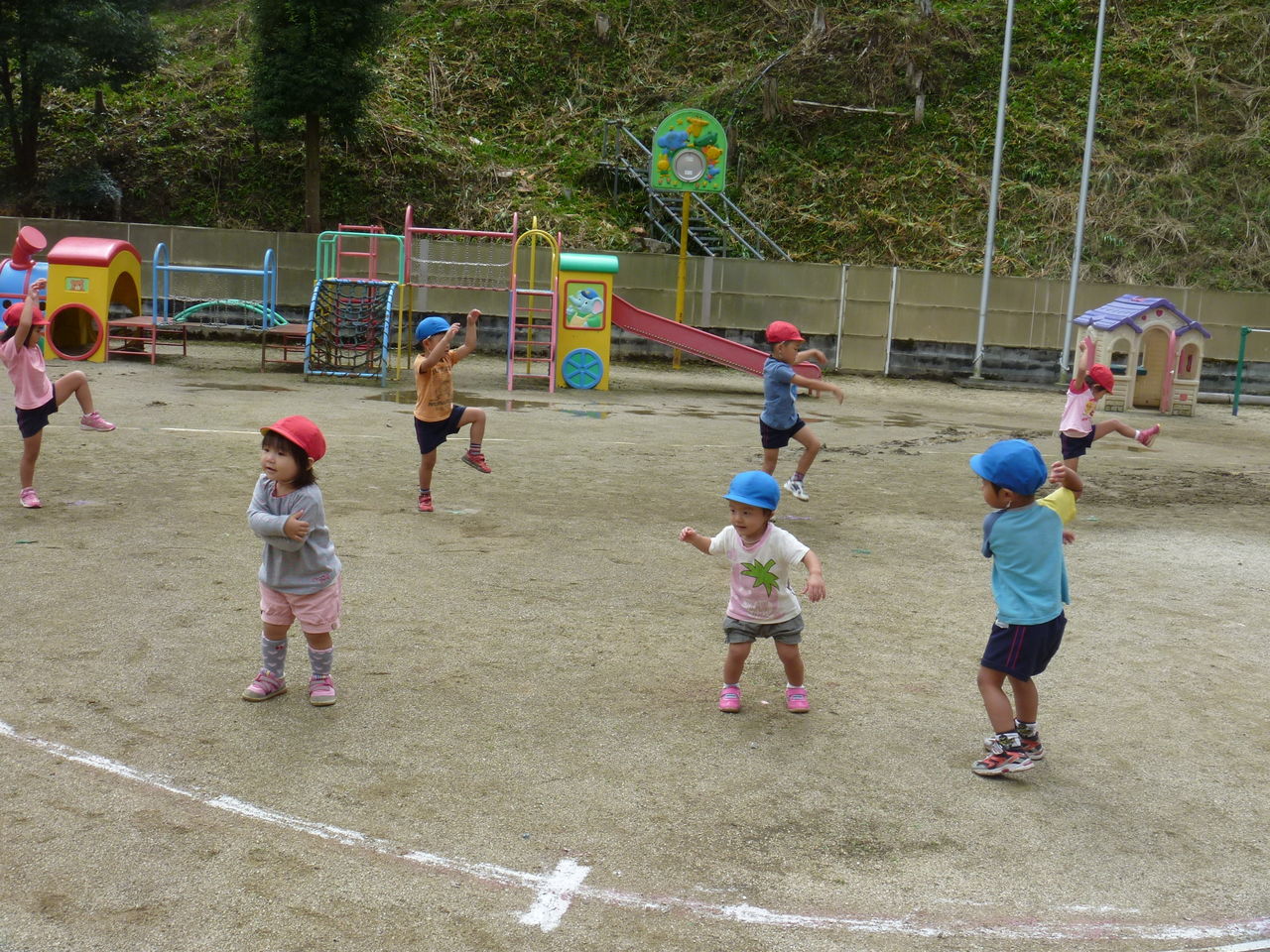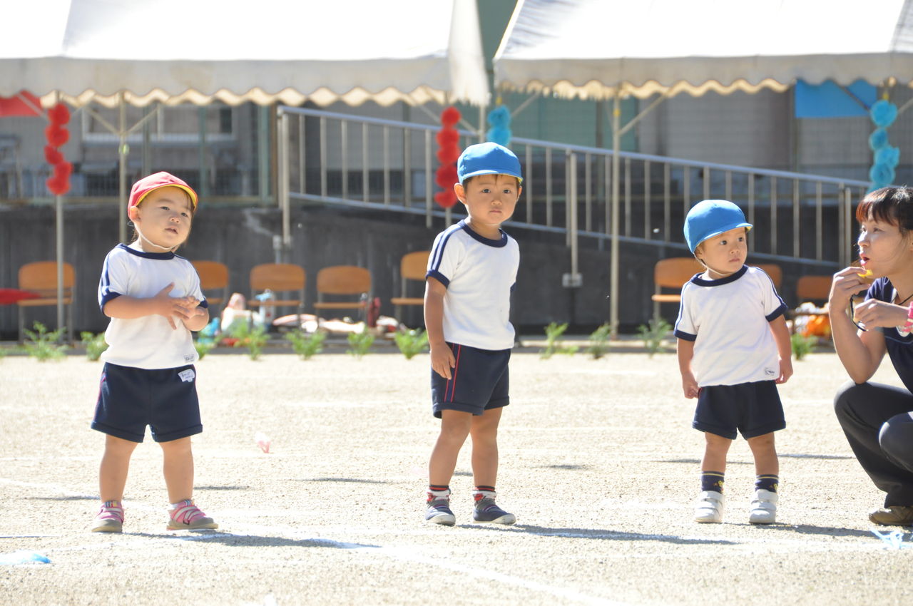 園児たちはたくさんの方々に観てもらうのを楽しみに、毎日おけいこをしてきましたが、そのがんばりの成果を、子ども達一人ひとりが、大きな運動場でも物怖じすることなく、元気にのびのびと、とても楽しそうにかけっこやお遊戯などみせてくれました。親子競技では、大好きなお父さんやお母さんにしがみついた子ども達のうれしそうな笑顔・・・ そんな成長した子ども達を見て、私たちもとてもうれしく思いました(^_^)ニコニコ。