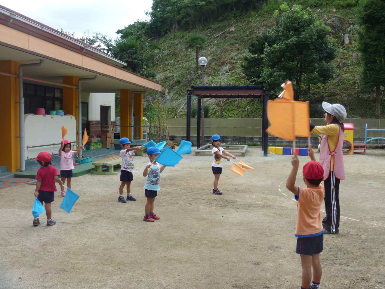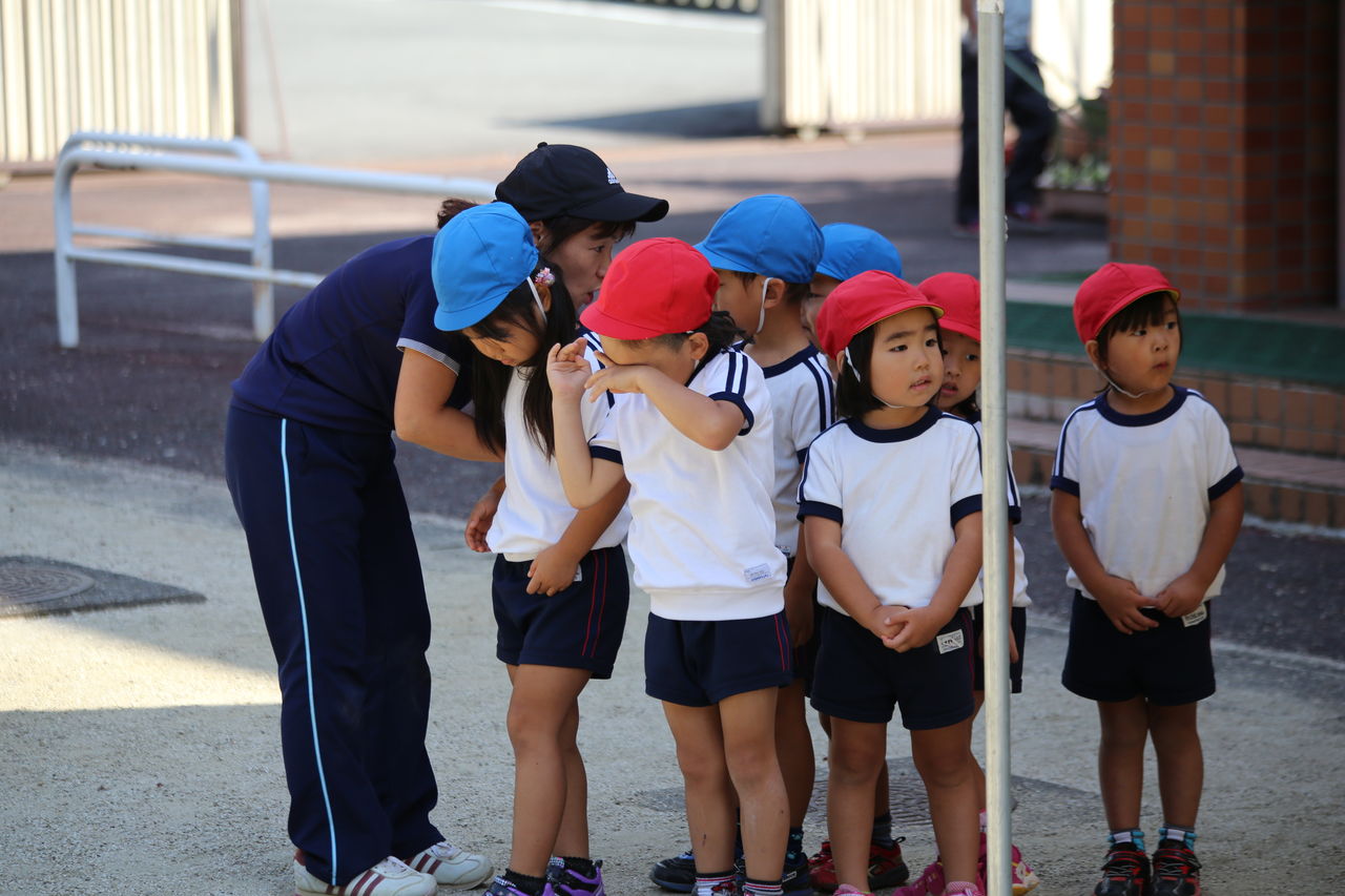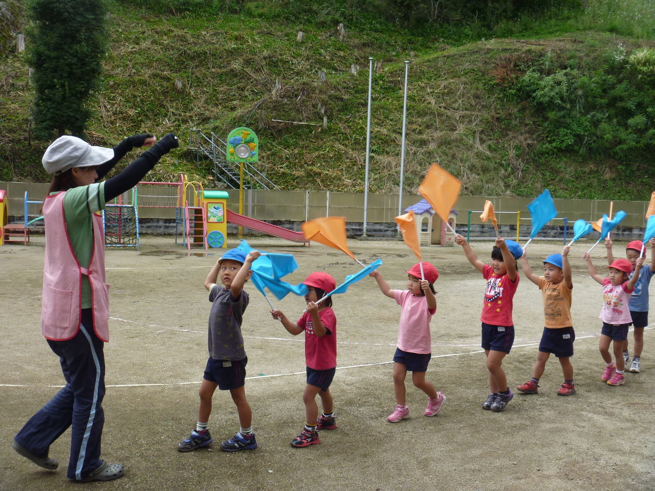 園児たちはたくさんの方々に観てもらうのを楽しみに、毎日おけいこをしてきましたが、そのがんばりの成果を、子ども達一人ひとりが、大きな運動場でも物怖じすることなく、元気にのびのびと、とても楽しそうにかけっこやお遊戯などみせてくれました。親子競技では、大好きなお父さんやお母さんにしがみついた子ども達のうれしそうな笑顔・・・ そんな成長した子ども達を見て、私たちもとてもうれしく思いました(^_^)ニコニコ。