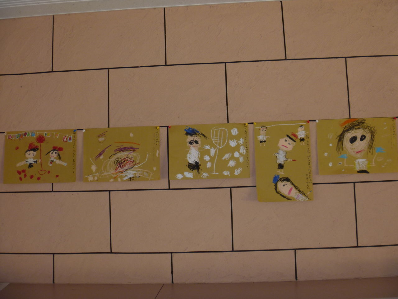 「小学生のお兄ちゃん走るの速かったね〜」 「お弁当おいしかったよ〜」などなど話しながら、描いていましたよ。