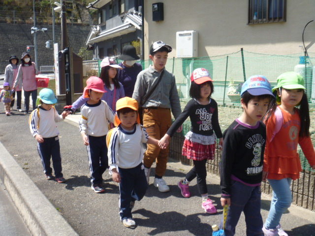ひよこ・りす組さんも「お外いこうか〜!」と声かけると、朝の用意が終わるのも早く、帽子も自分でかぶってお外にでています。