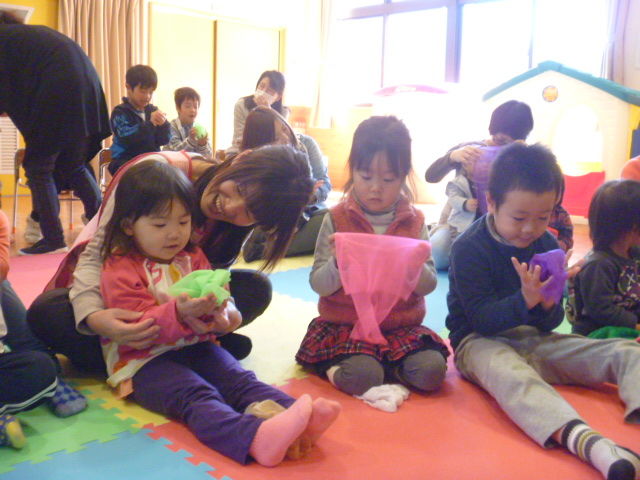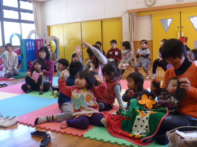 おはなしのことば遊びを楽しんだり、リズムに合わせて体を動かしたり、そしてじっくり物語の世界にはいったり・・・