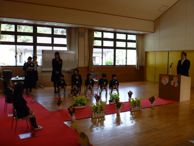 栗山村長をはじめ、たくさんのご来賓の方々や、保護者の方々に見守られながら、卒園式が始まりました