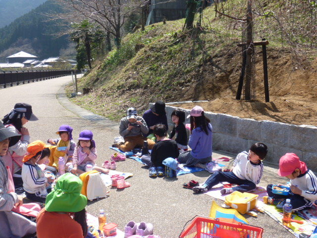 青空の下で食べるお弁当は、おいしさも格別 みんな、ペロッと食べてしまいました(* ́ェ`*)