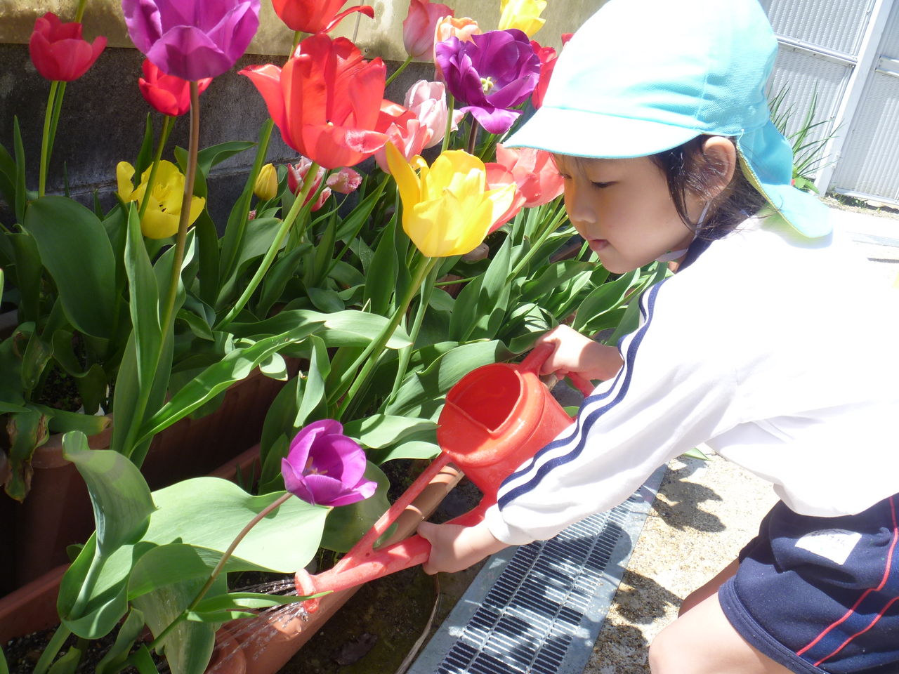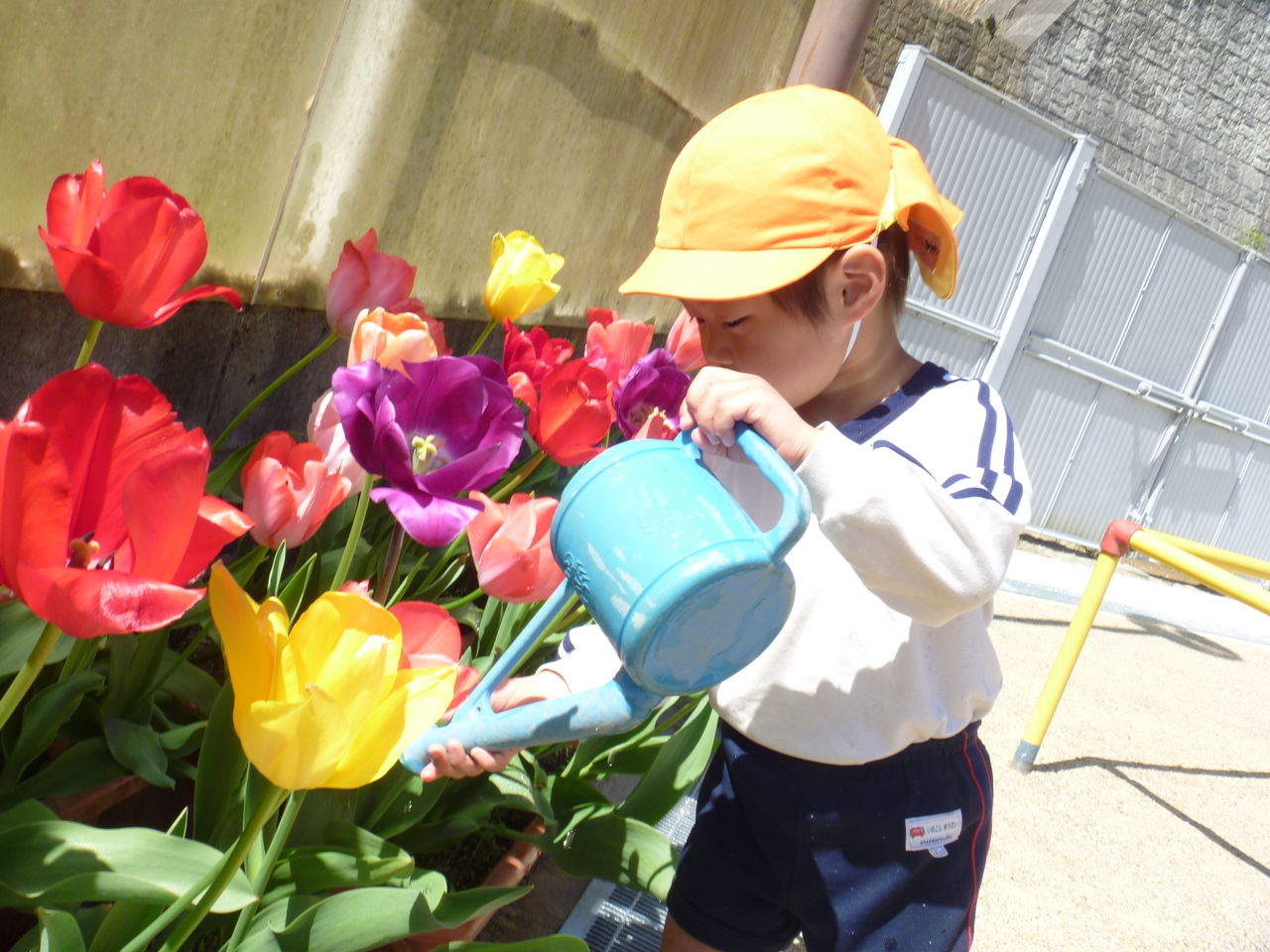 園庭のチューリップがとてもきれいに咲いてるんですよ〜。