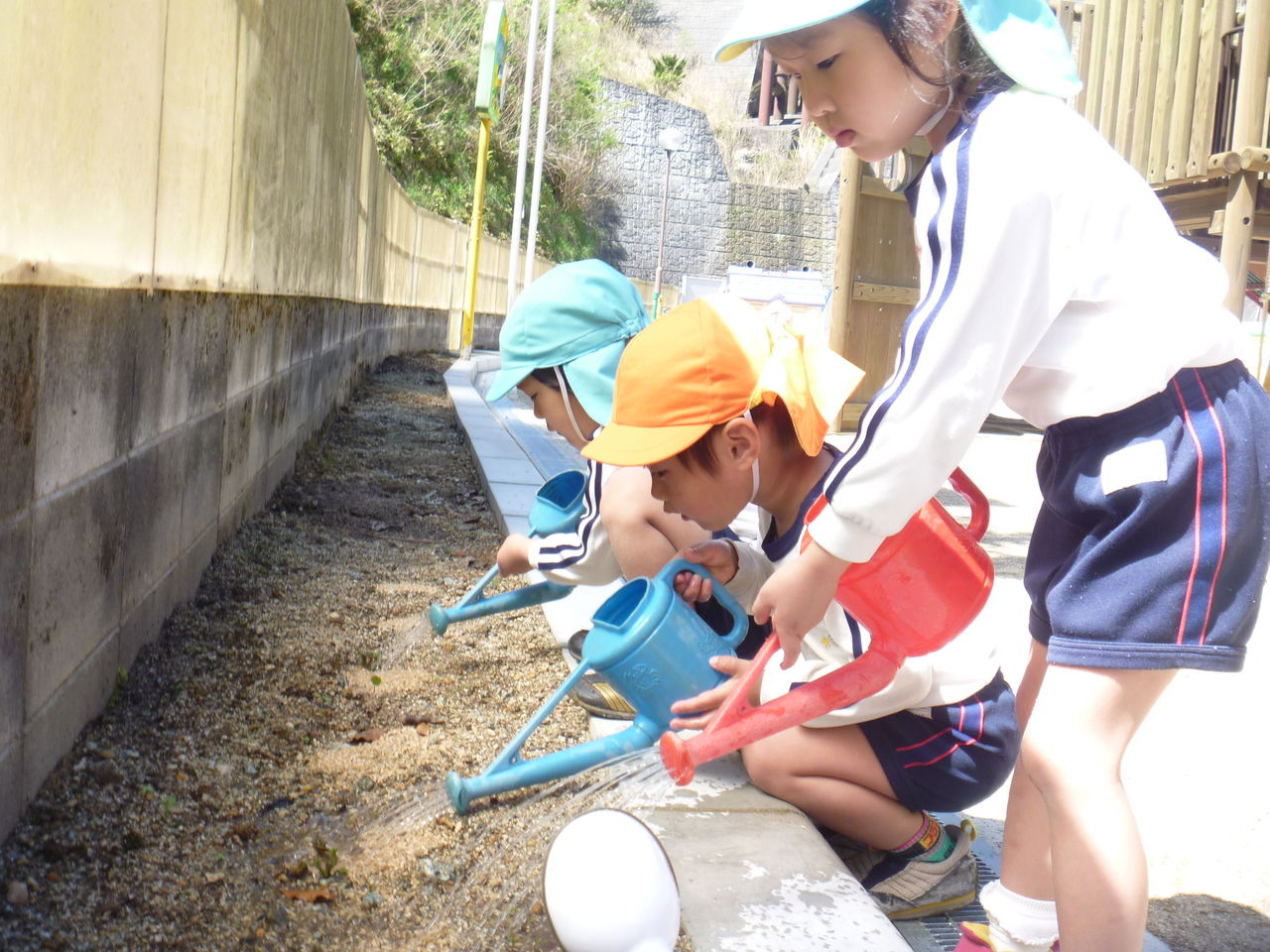 「もっとしたい〜」と広い園庭のお花や畑の水やりをしてくれてました。