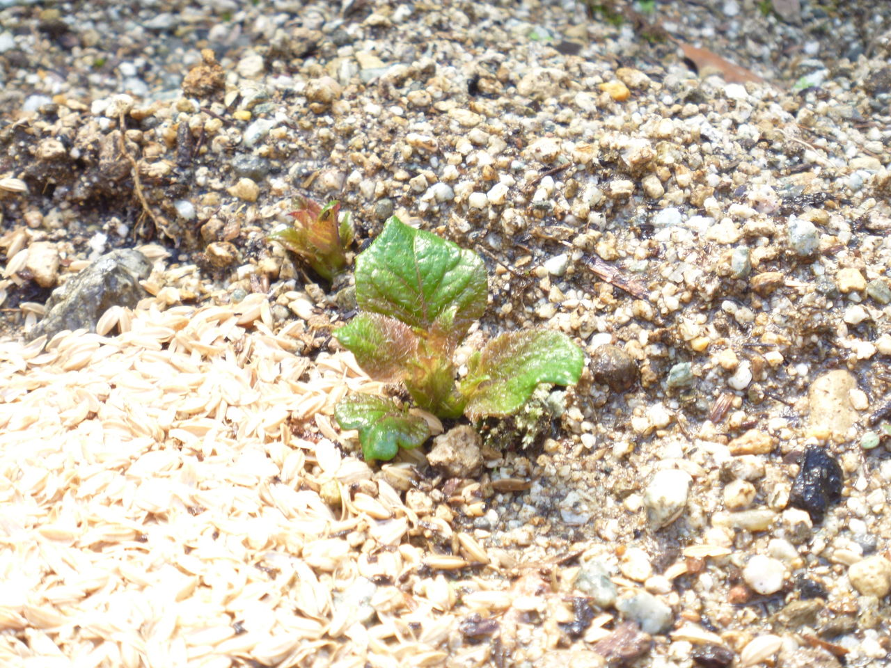 畑にジャガイモの芽がでてることを話すと「どこどこ〜?」と探して見つけると。。