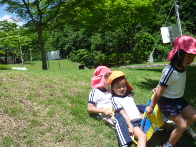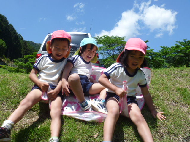 芝生のところで、おいしいお弁当食べた後は、お楽しみの芝すべり♪(*゚▽゚*)