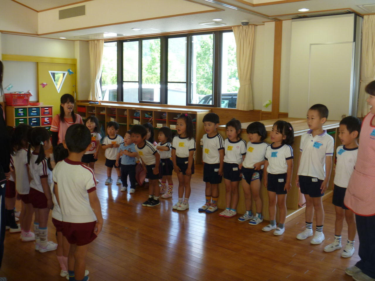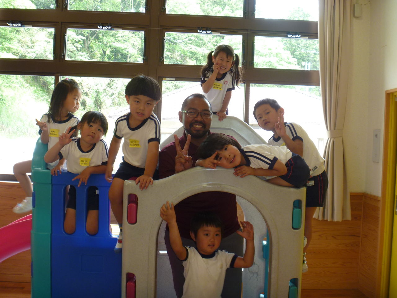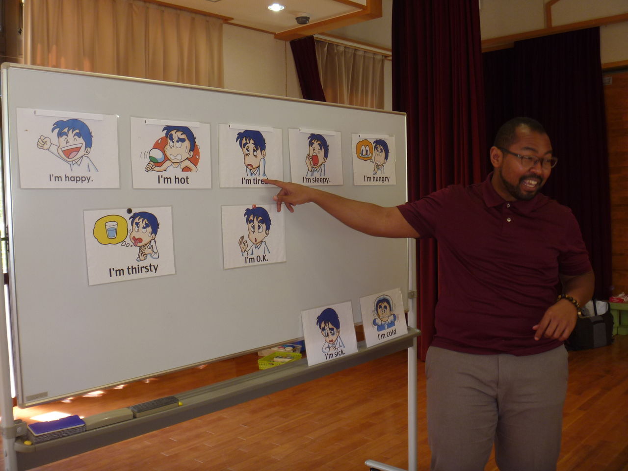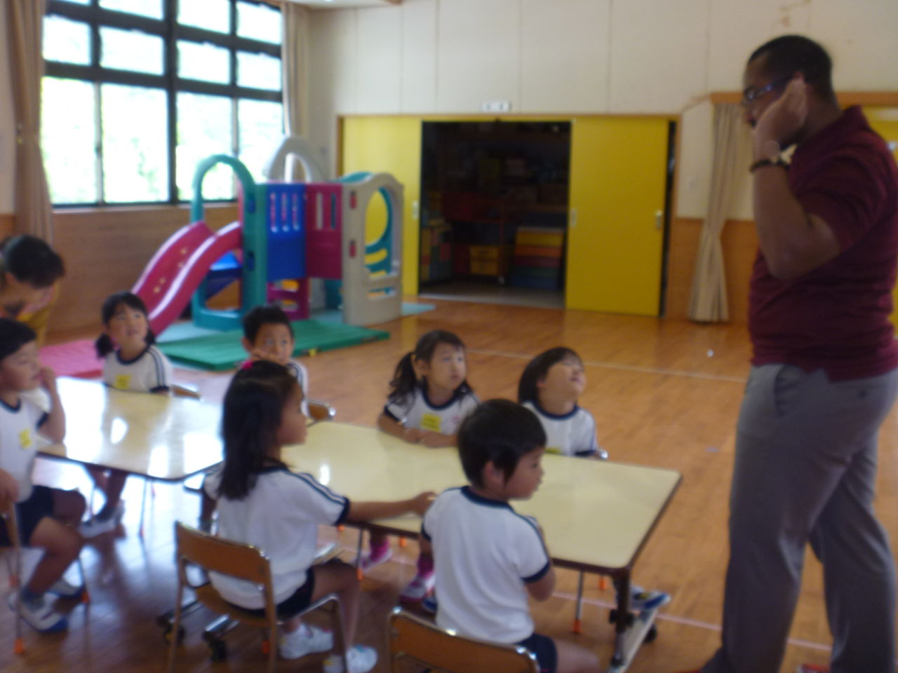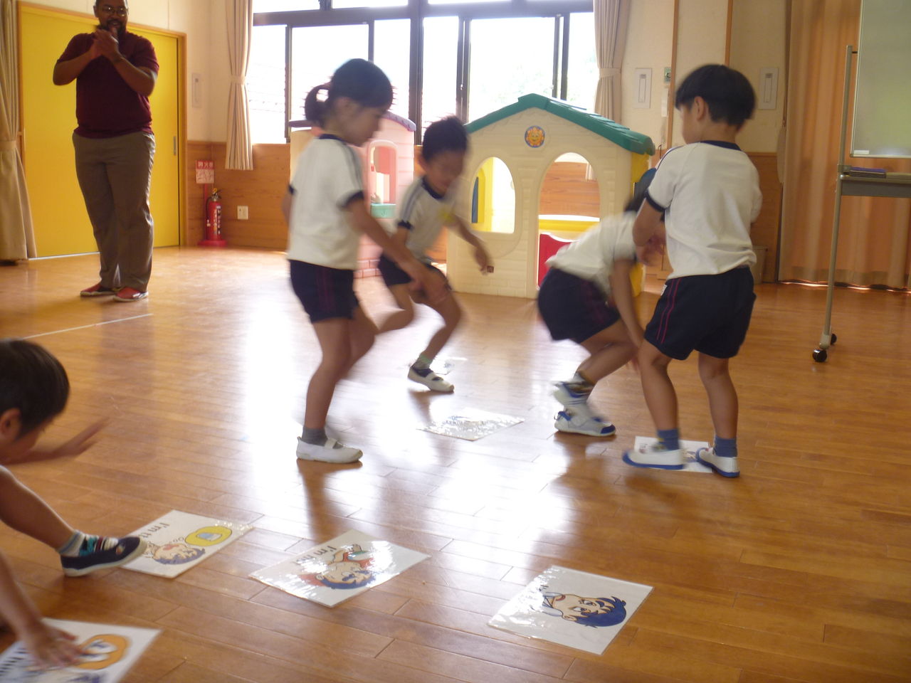 レニー先生が来ると初めは「ハロー!」と少し恥ずかしそうにしていた子ども達ですが、レニー先生の後をついて「Im happy!」 と元気な声が聞こえてきました。(*゚▽゚*)