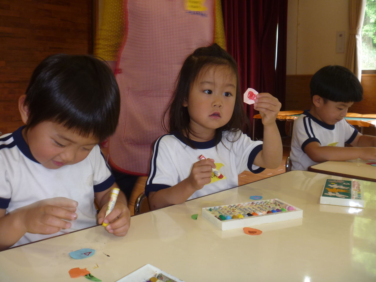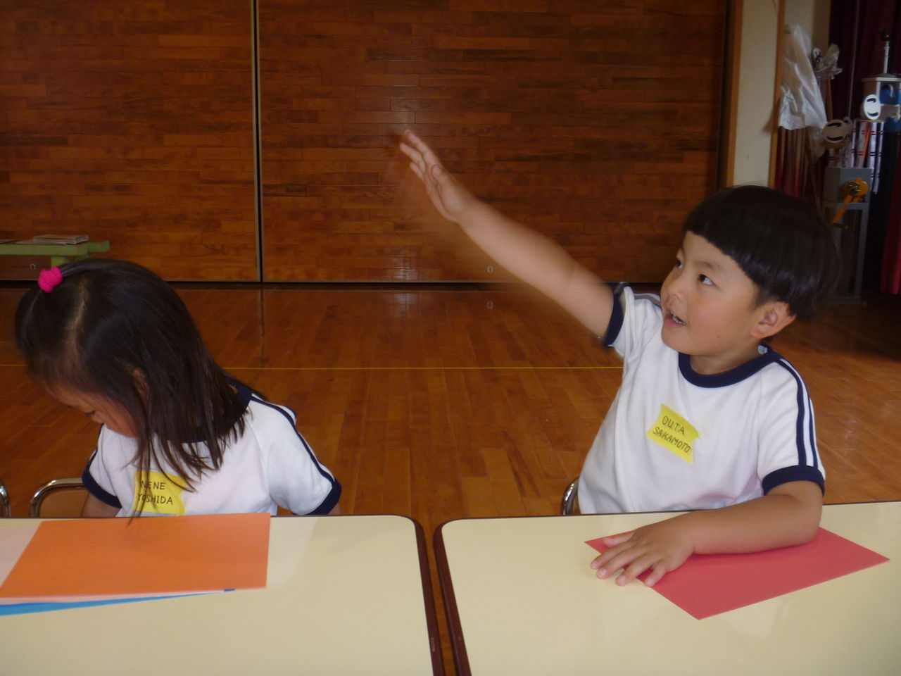 さすが子ども達は、覚えるのも早くて、「レッド」 「グリーン」 「ブルー」と英語で答えていましたよ〜。(o^∇^o)ノ