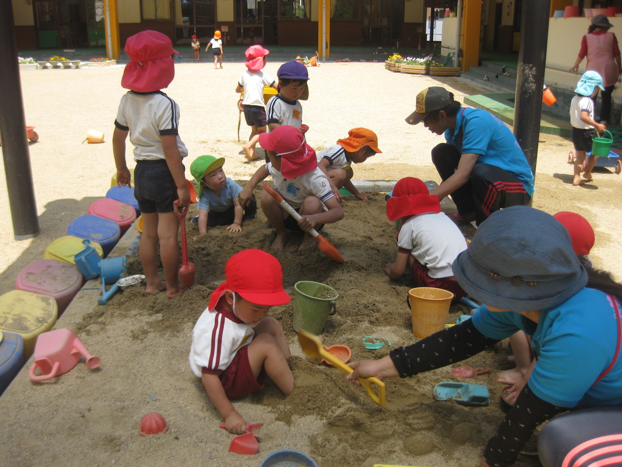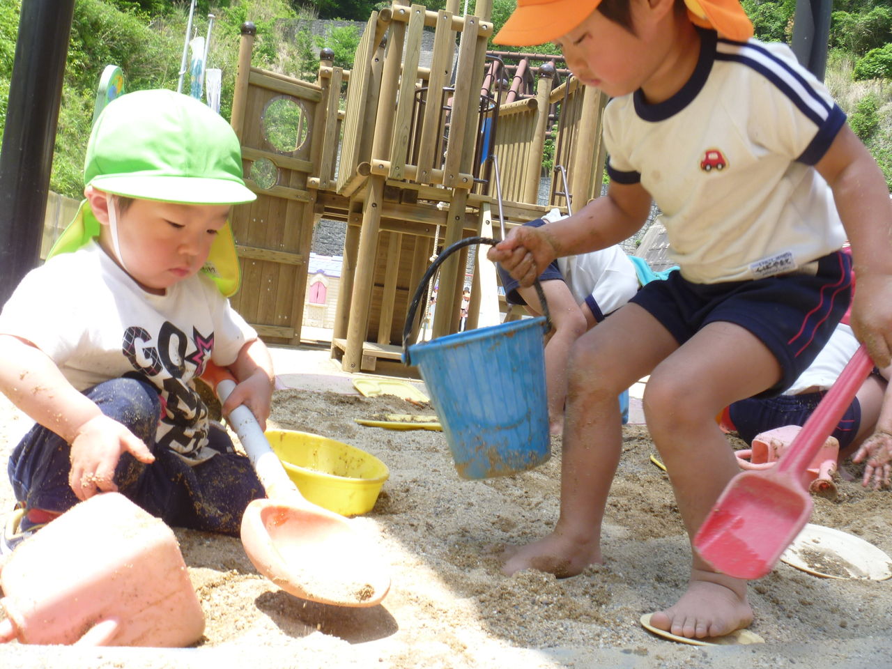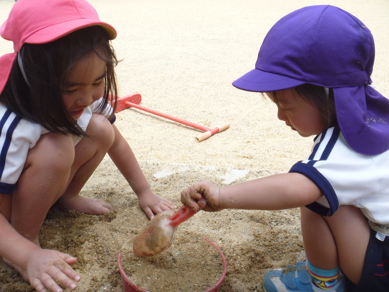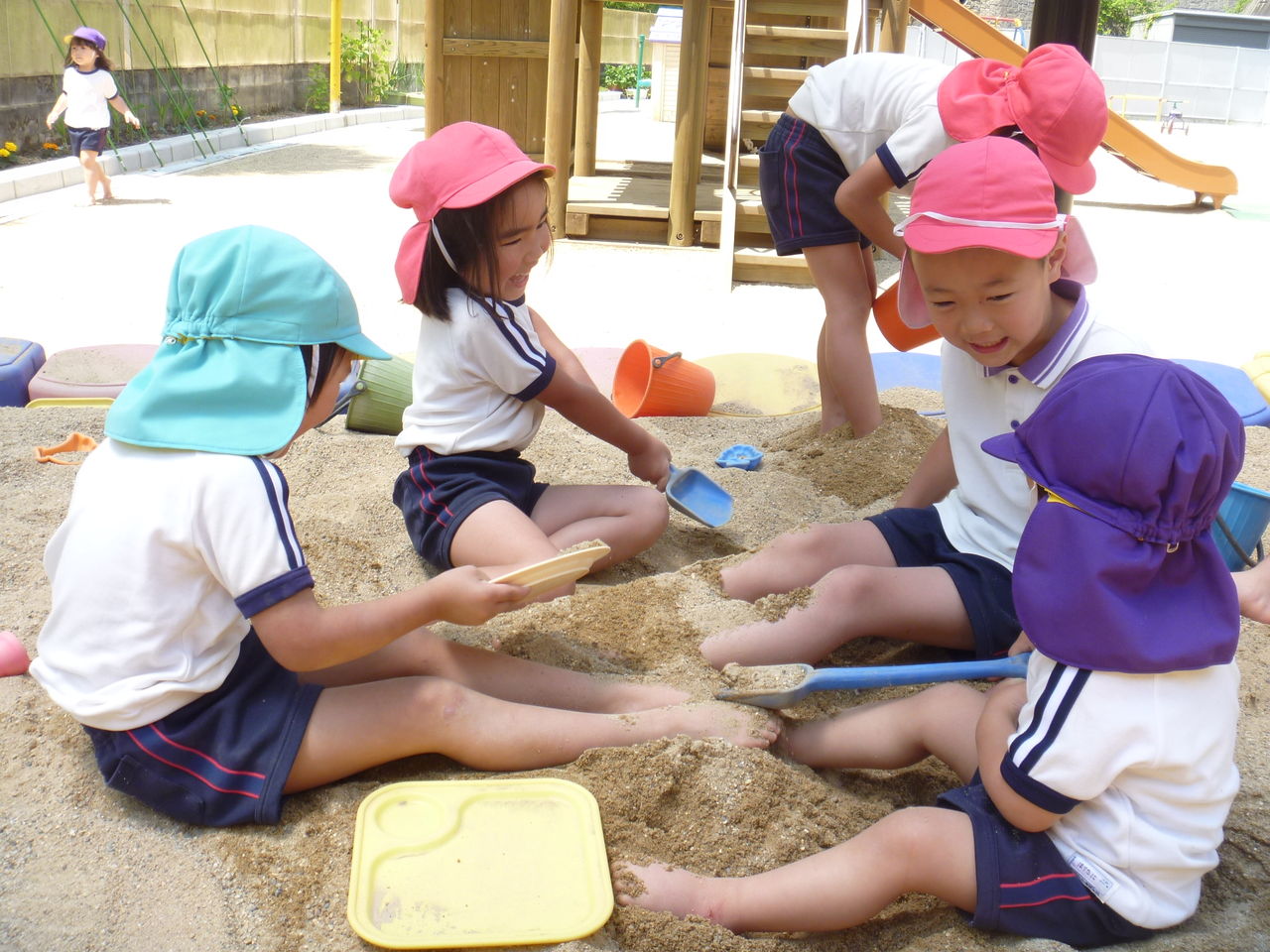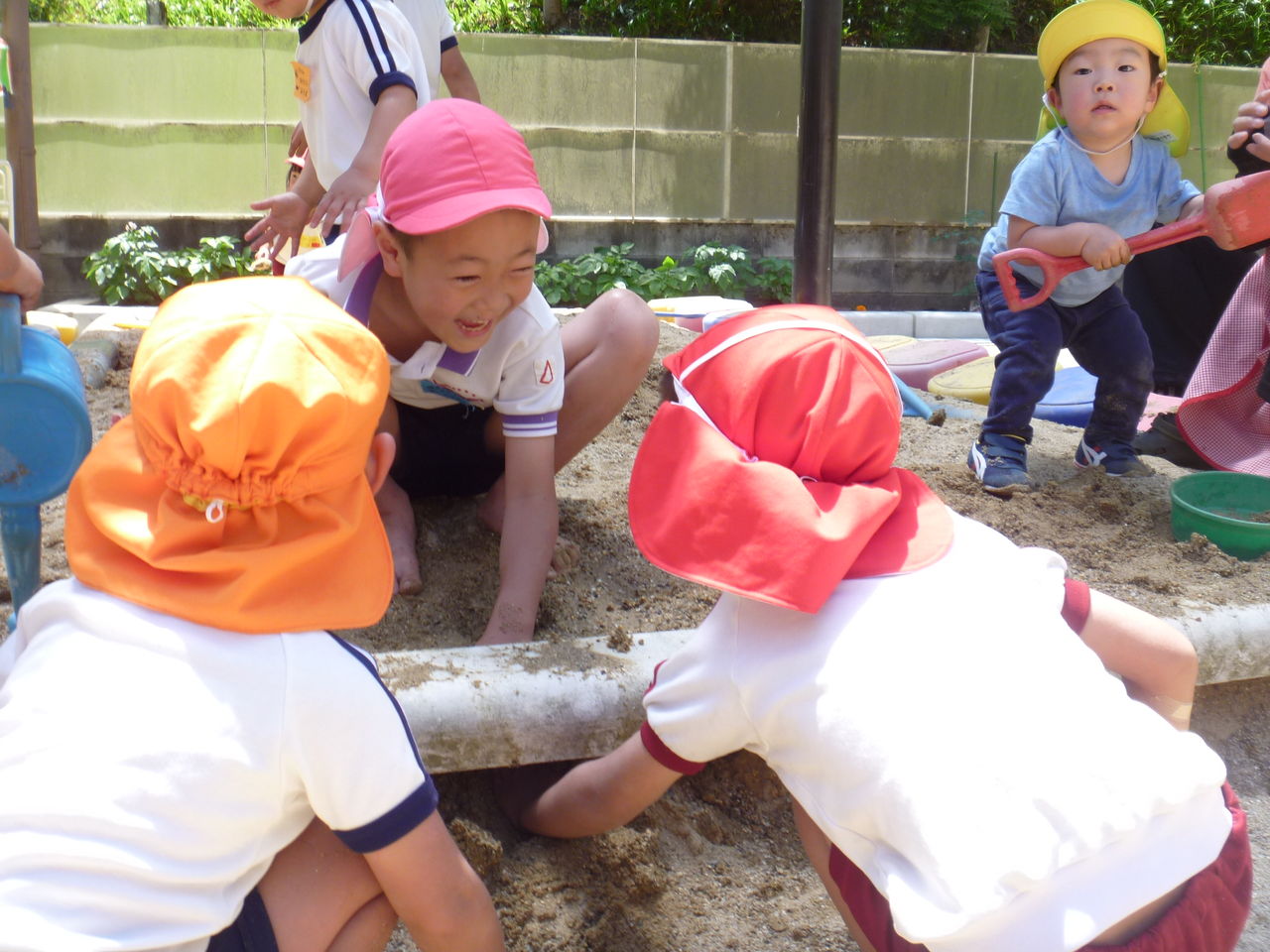 大きい組も小さい組も、みんな砂遊びがだ〜い好き