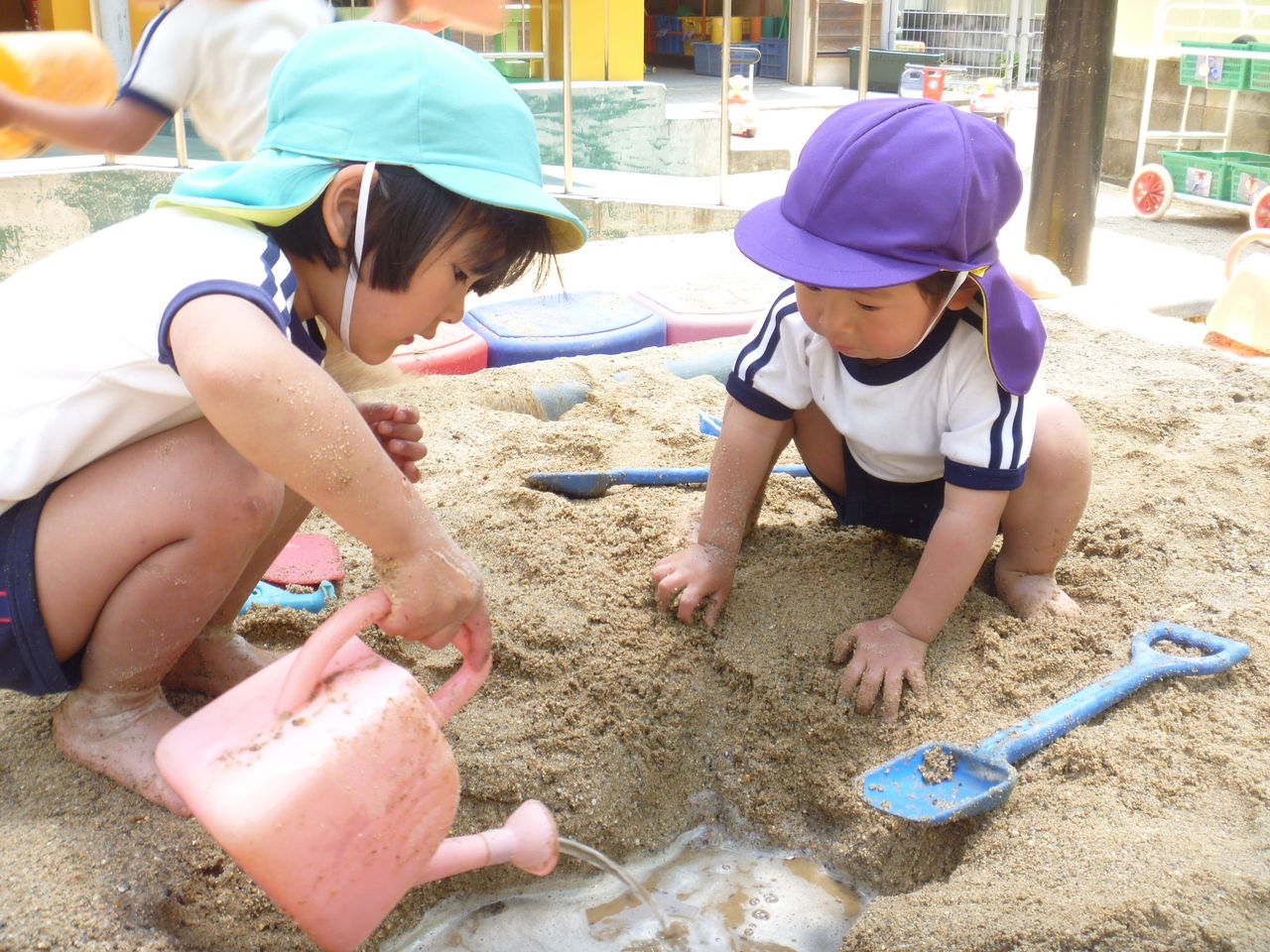 砂場にお水を流し込みましたよ〜('▽'*)ニパッ♪
