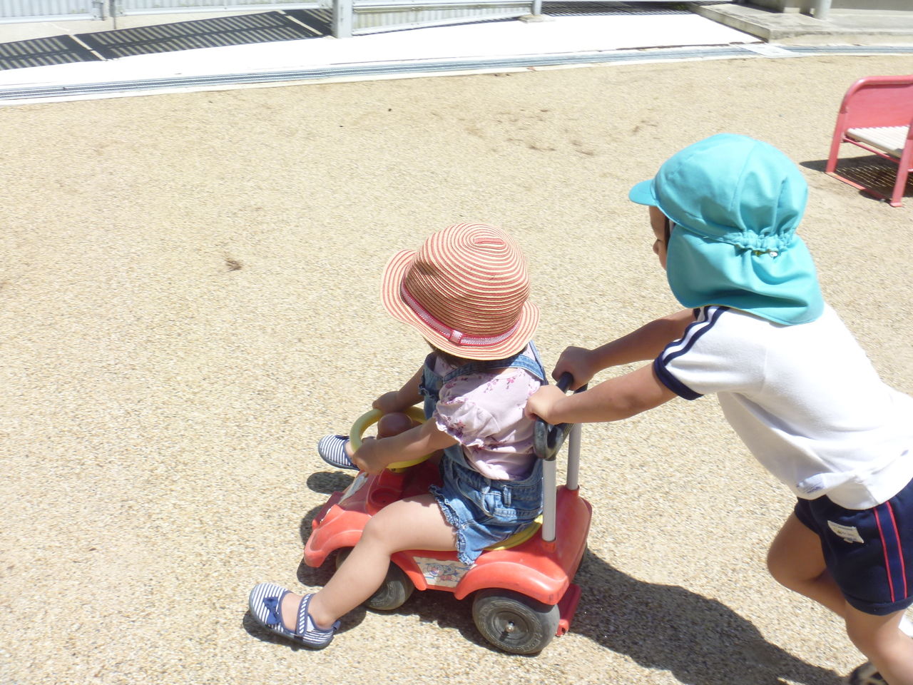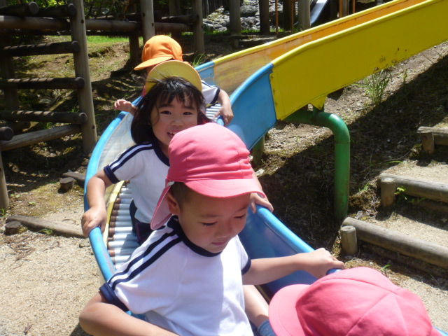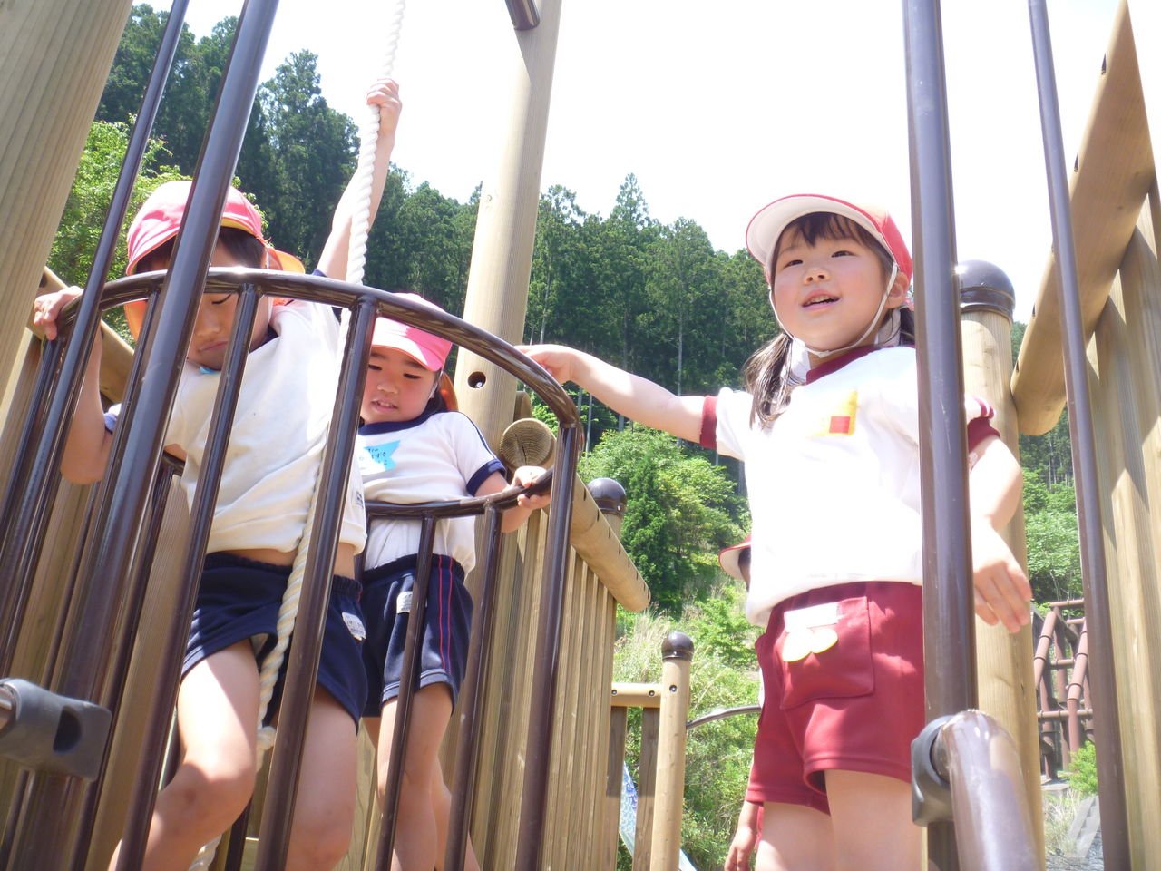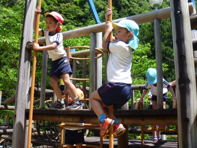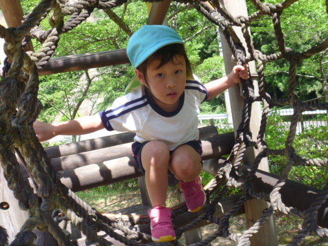 「ほら新しい木製遊具ができてんで〜」と、お友達に声をかける姿も見られました('▽'*)ニパッ♪