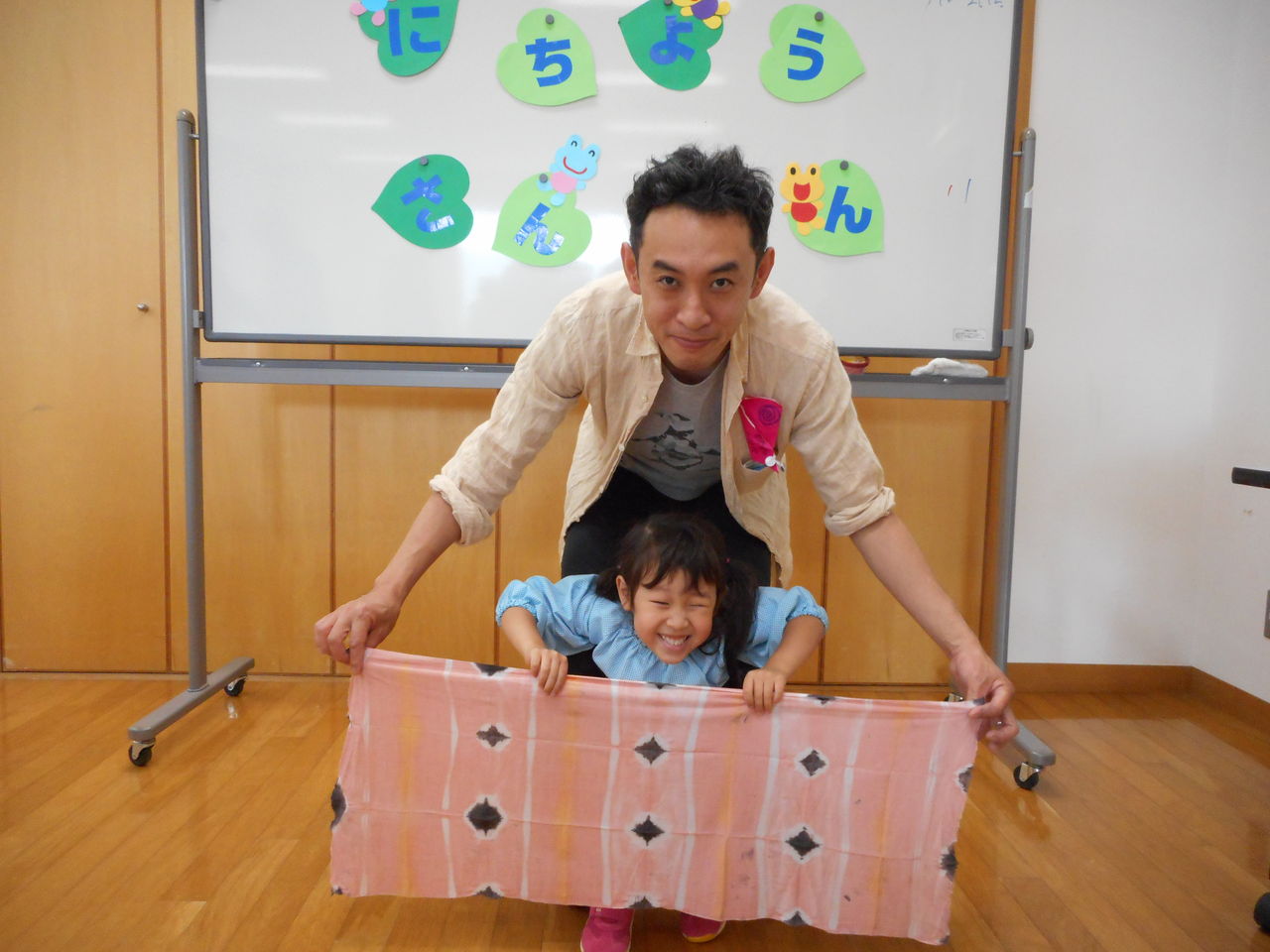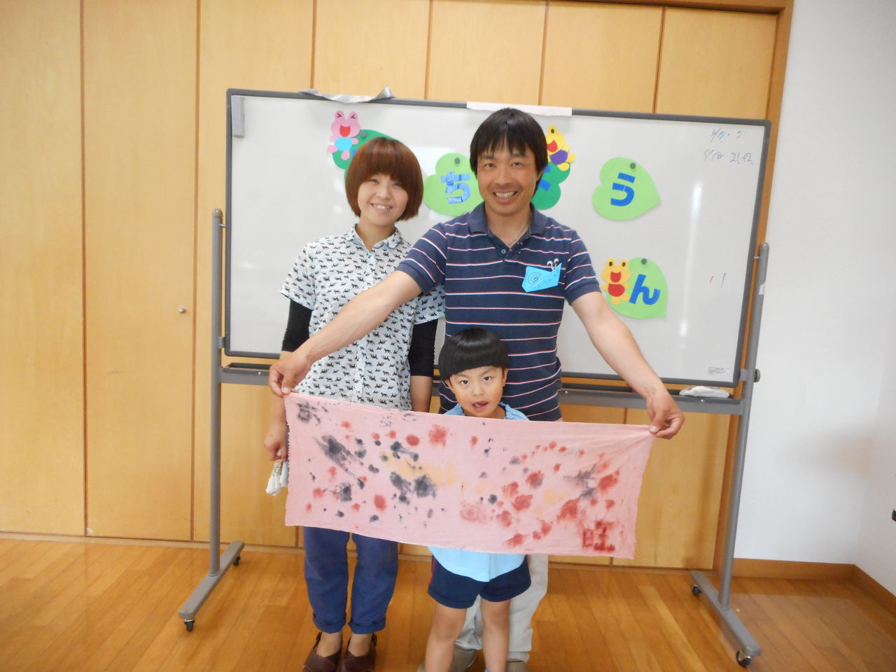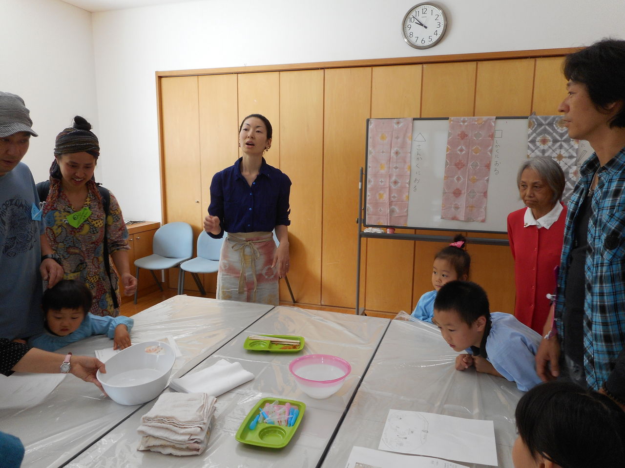 さてさて、ふれあい遊びの後は、お待ちかねのべんがら染めの体験です