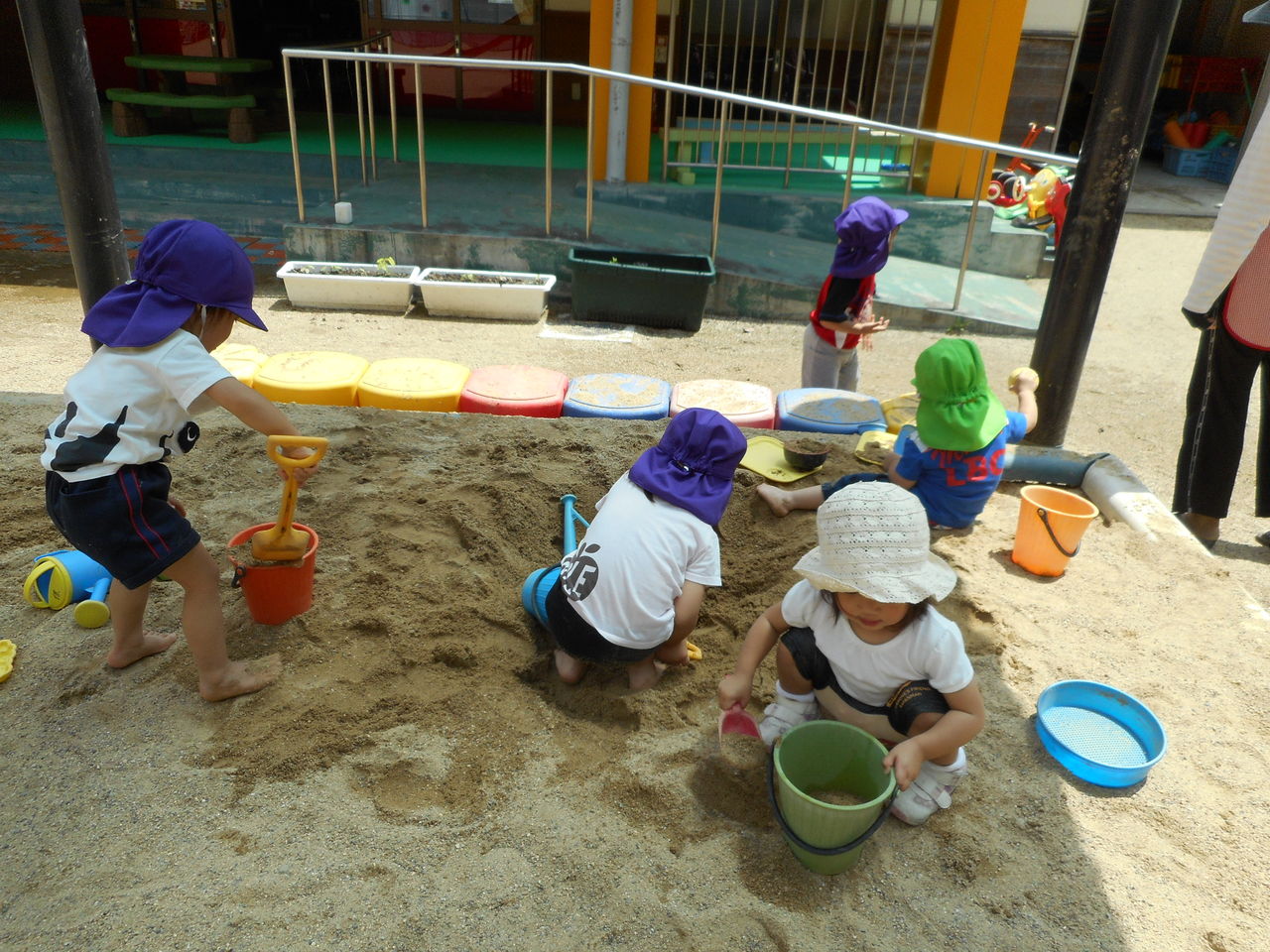 プールに水遊びに、泥んこ遊びなどなど・・・夏ならではの遊びを思いっきり楽しみ、一段と元気にたくましく成長してくれるのを、見守っていきたいと思います(*'-'*)