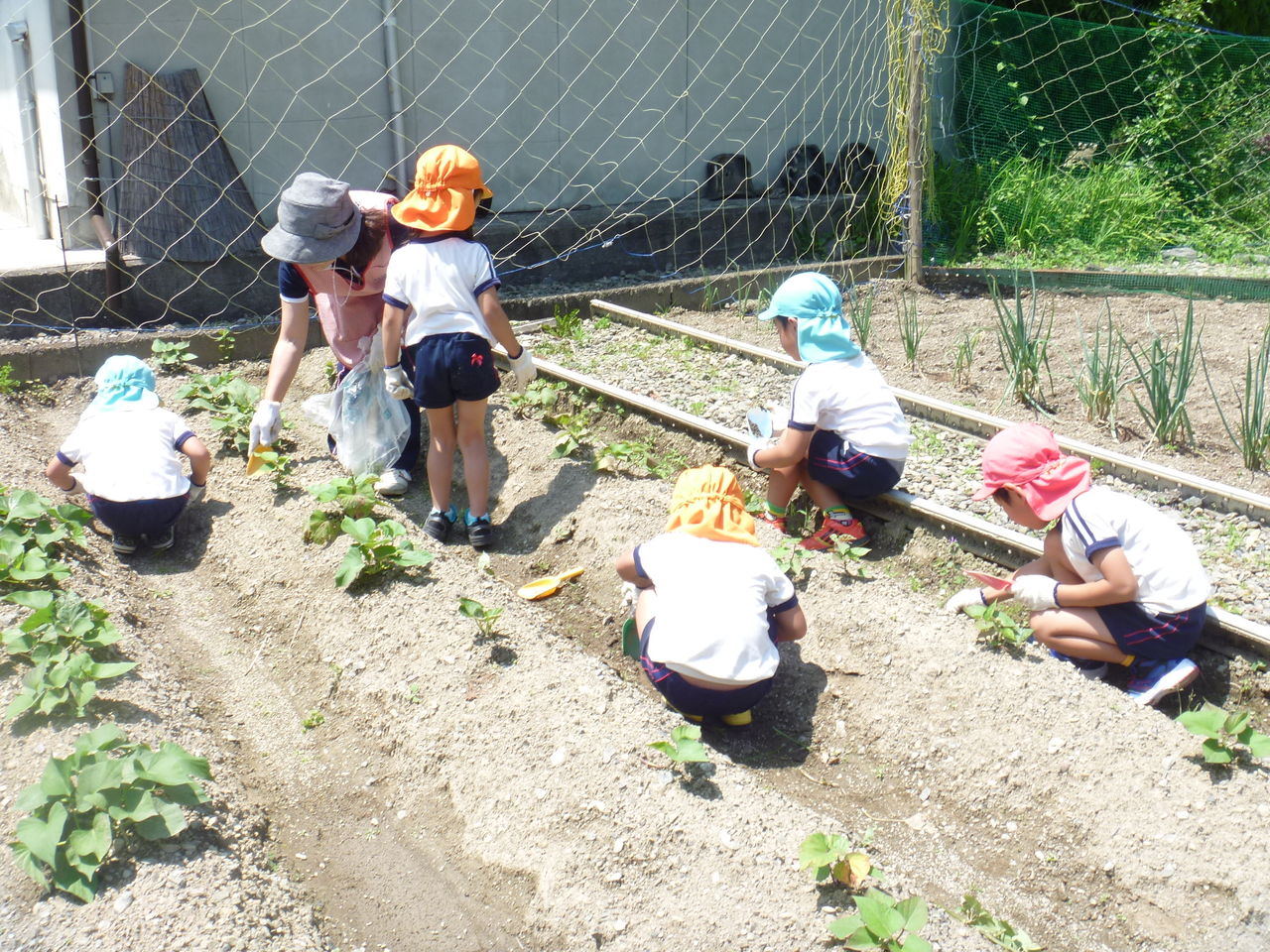 校庭遊びも楽しんだ後は、サツマイモの様子を見に行ってきました(o^∇^o)ノ。