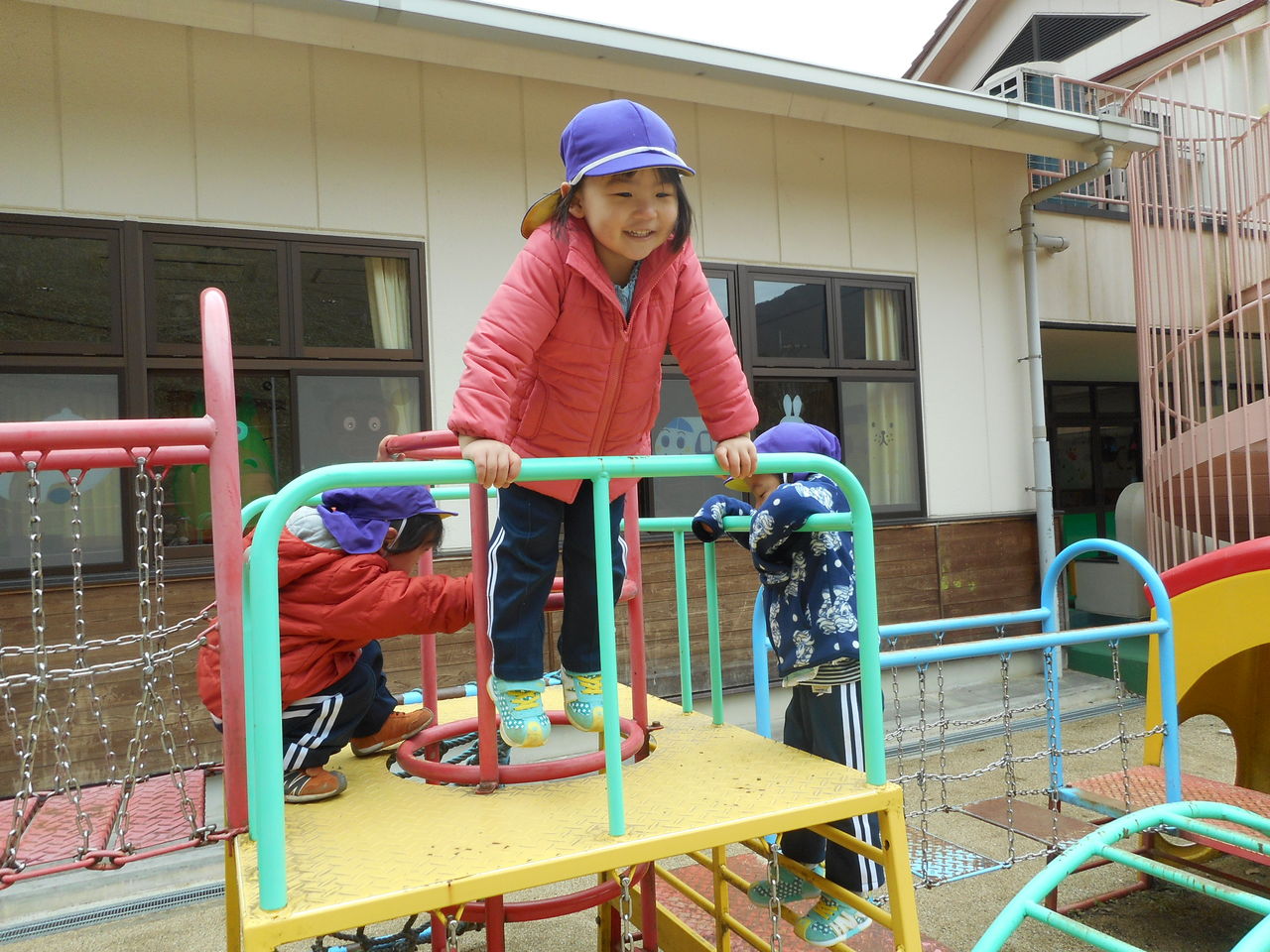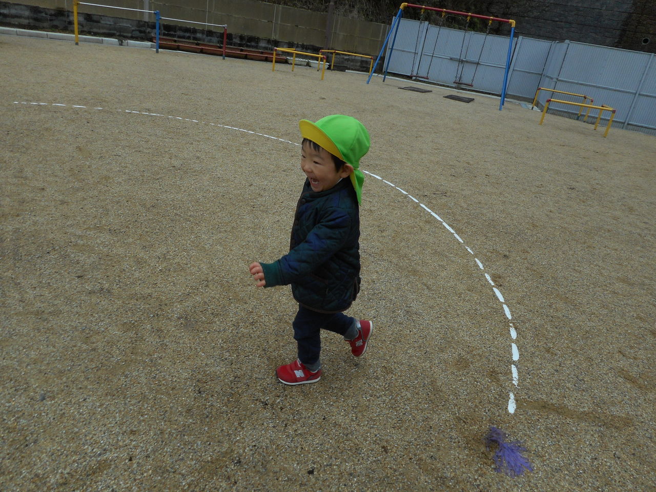 お日さまが雲に隠れるととても寒くて、みんなで鬼ごっこをして園庭をかけ回りました