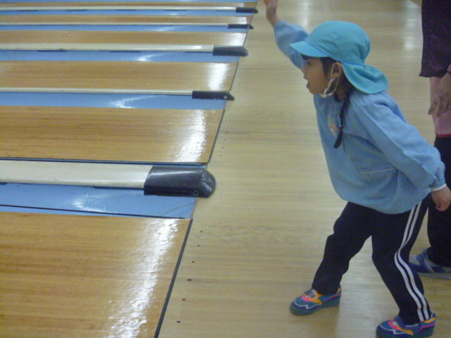 お友達とするボウリングは楽しかったようで、「もっとやる〜!」と喜んでました。