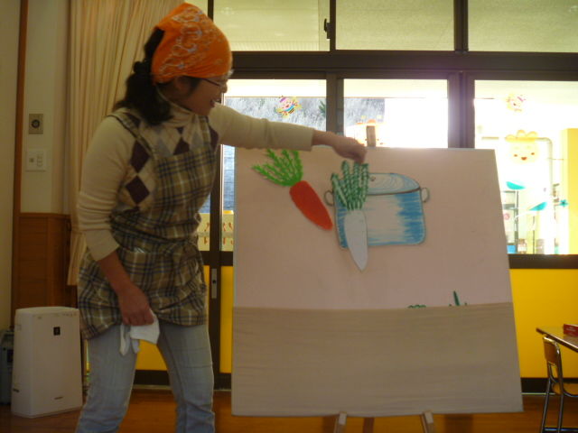 パネルシアターで野菜あてクイズもあり喜んでました。('▽'*)
