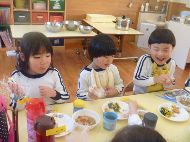 おにぎりも上手ににぎれたよ〜(*゚▽゚*)