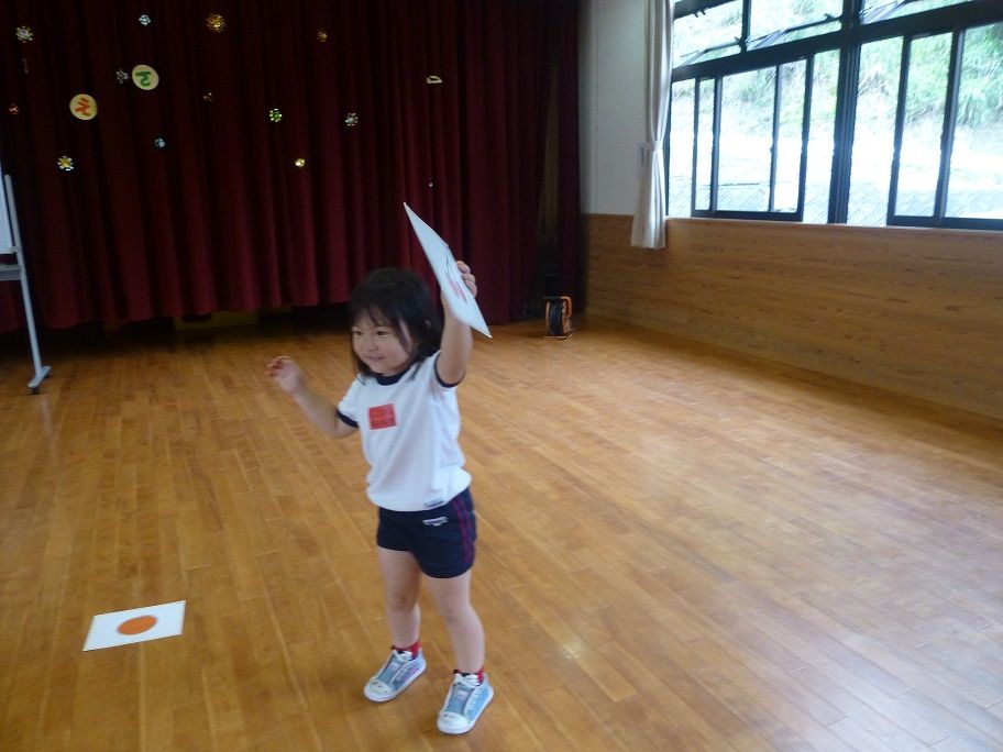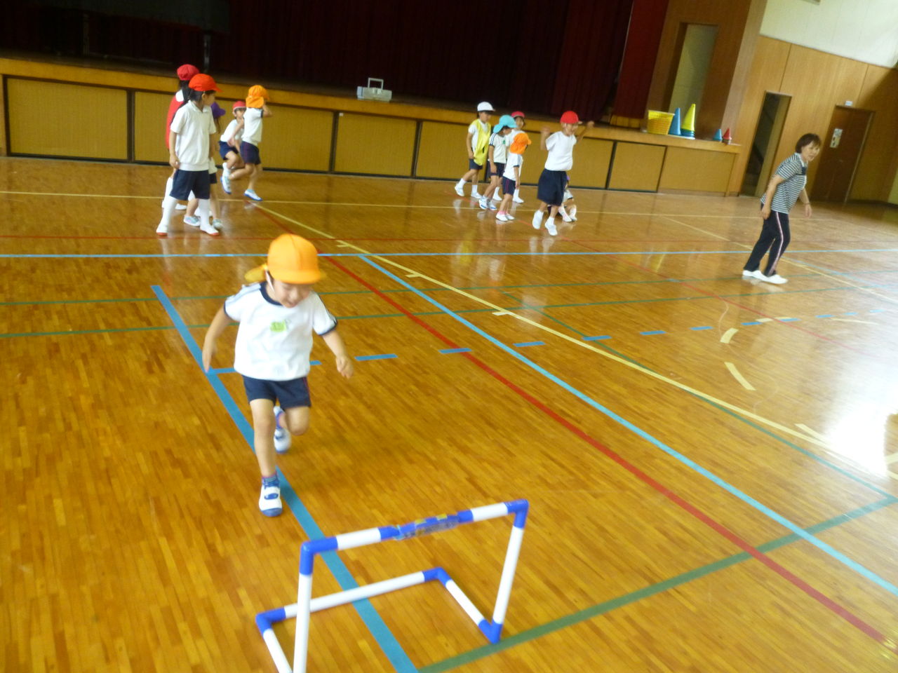 次の色は何かな〜走ったり、先生の掛け声に合わせて止まったり、探したり・・・