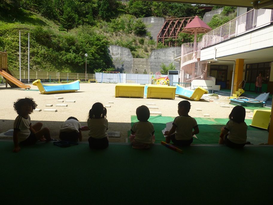 子ども達も、プールが完成して大喜び今からプールあそびを楽しみにしています。