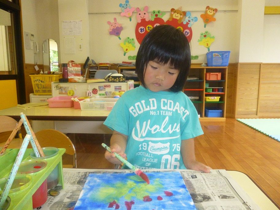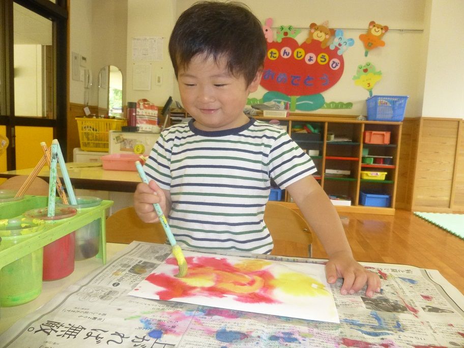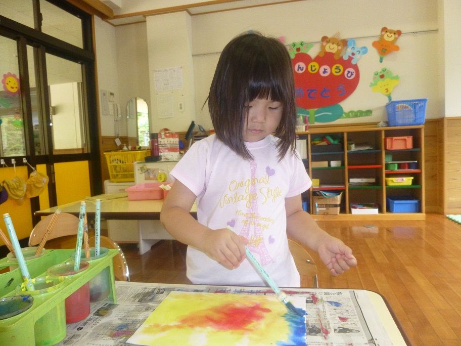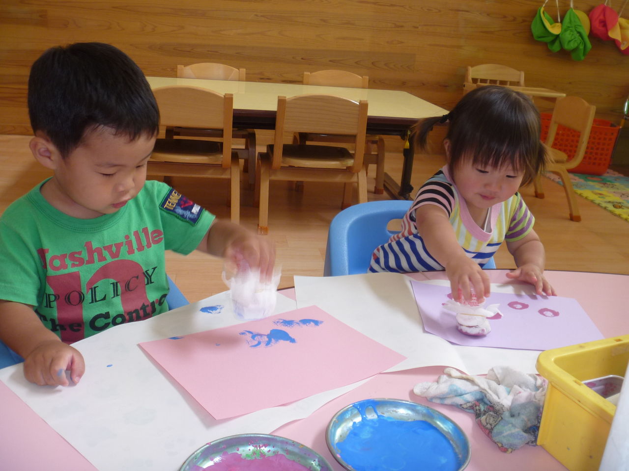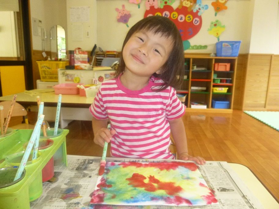 うさぎ・きりん組は絵の具あそびをしましたよ