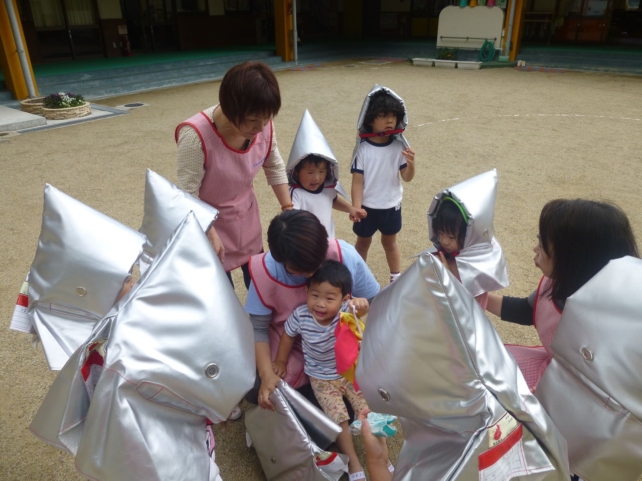 ひよこ・りす組さんは、びっくりしたようで泣いてしまうお友達もいました〜。