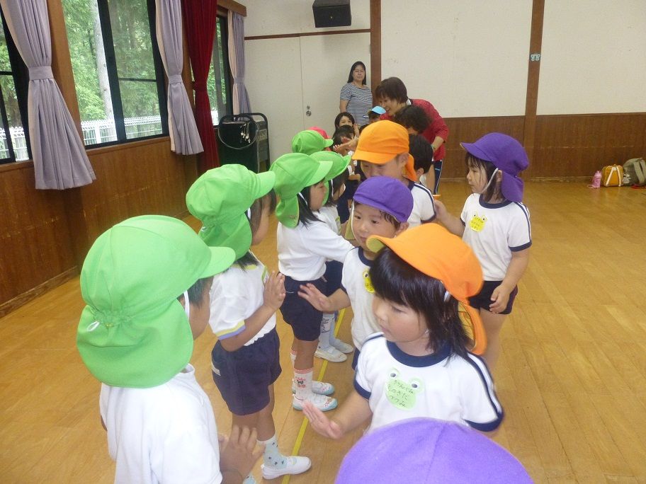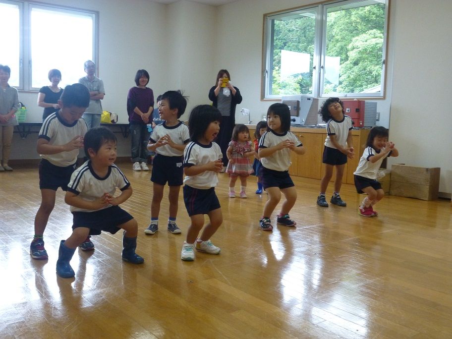 始めにいつもしている‘くまもん体操’を、お家の人に見てもらいました